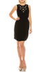 Introducing the Sleeveless Embellished Crepe Dress by Adrianna Papell in classic black, perfect for chic occasions. This dress is crafted with a crepe fabric composition of 100% polyester and features a flattering A-line silhouette. It is detailed with dazzling beaded embellishments around the boatneck and includes functional side pockets. Closure is a hidden zip at the back, and it comes fully lined with a blend of polyester and spandex for comfort. Care for this stylish piece by hand washing and laying it flat to dry.