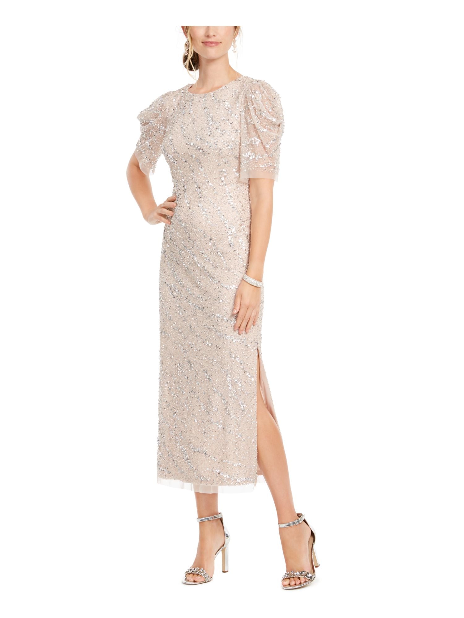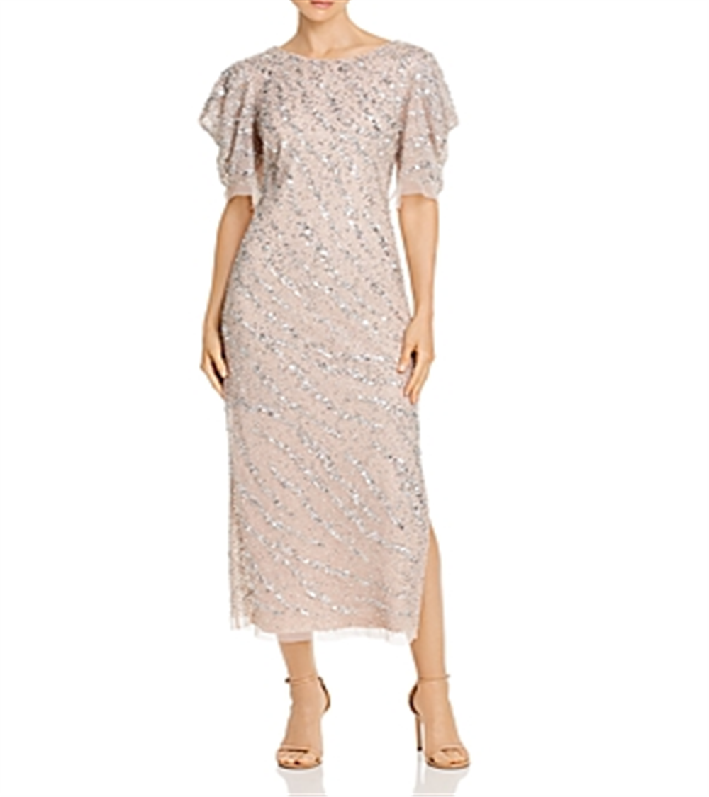 Adrianna Papell Womens Beaded Sheath MIDI Dress Brown Size 12