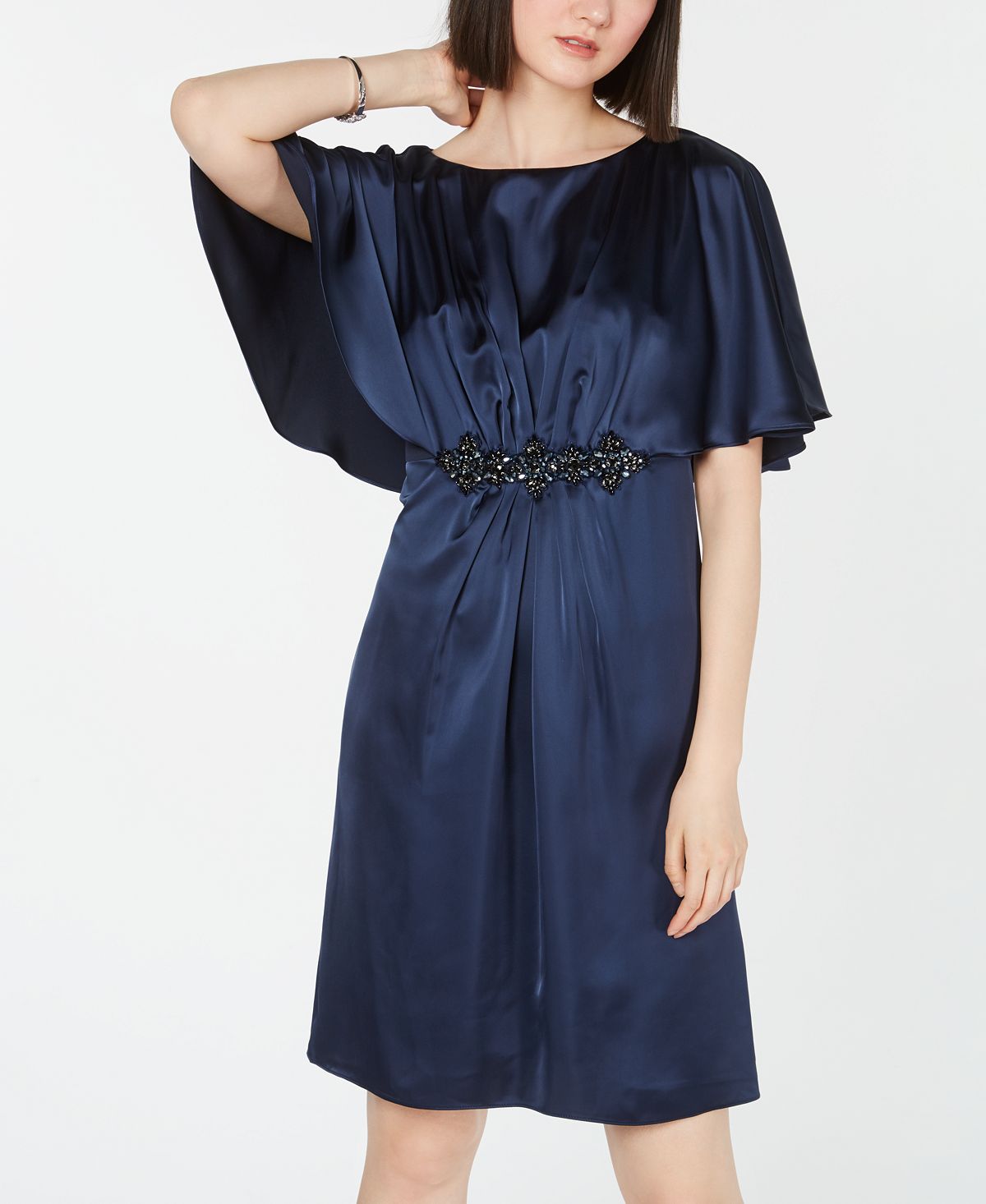 Adrianna Papell Women's Embellished Cape a Line Dress Silver Size 16