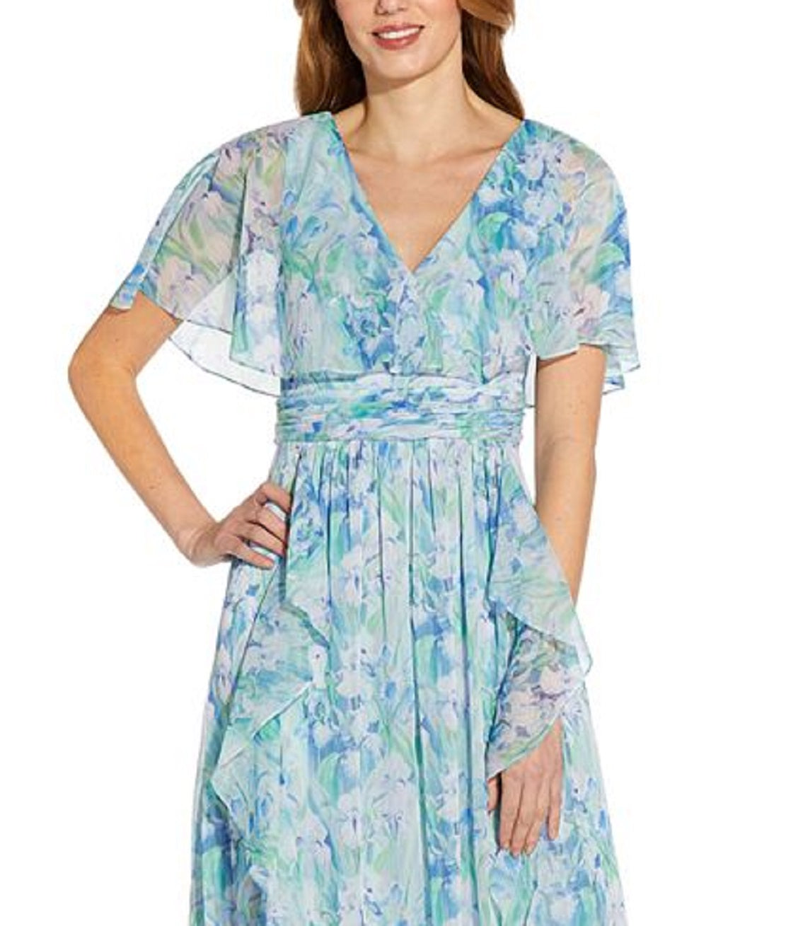 Adrianna Papell Women's Floral Print Chiffon Gown Blue Size 2