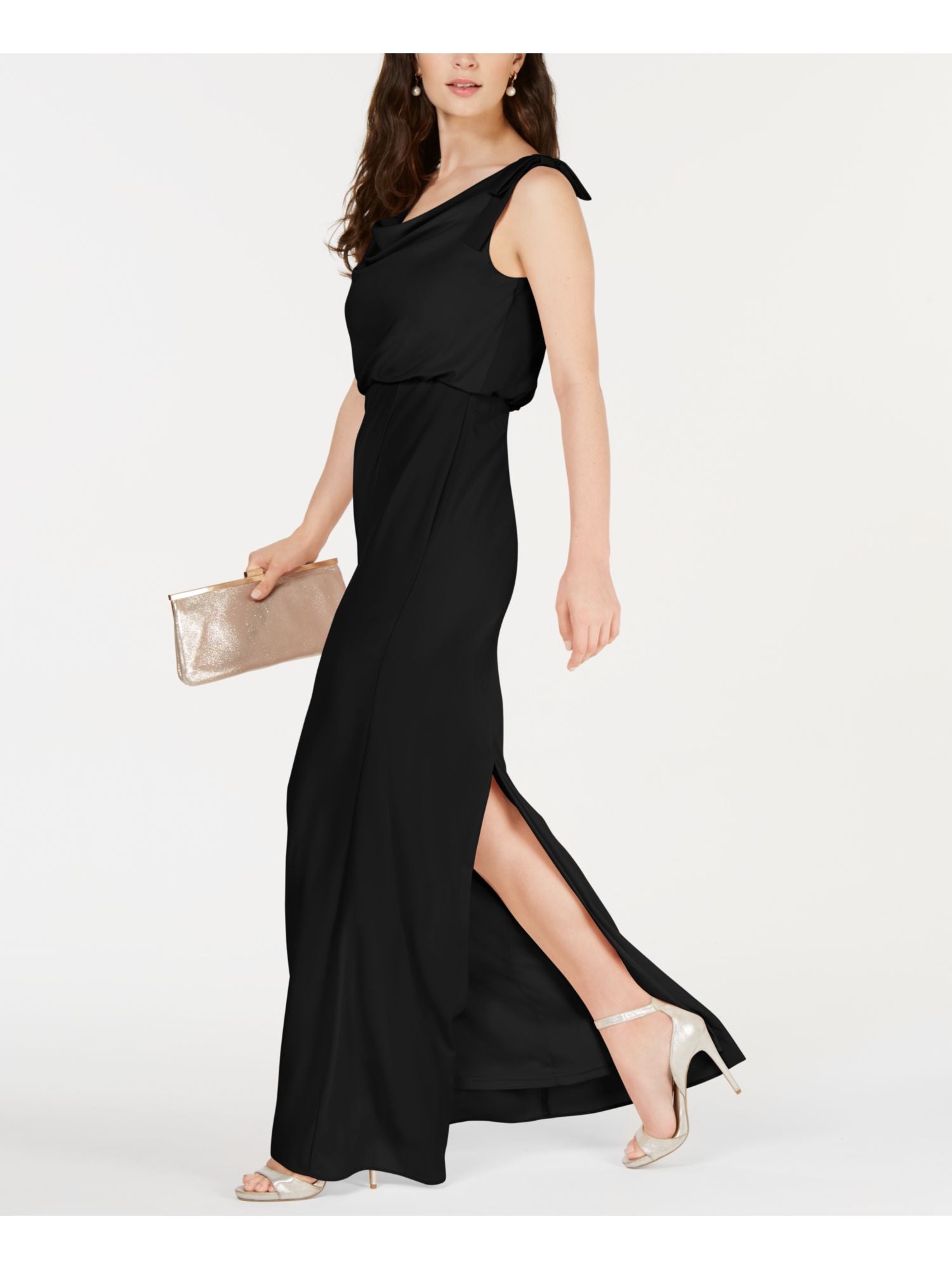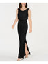 Adrianna Papell Women's Sleeveless Boat Neck Full Length Evening Sheath Dress Black Size 18