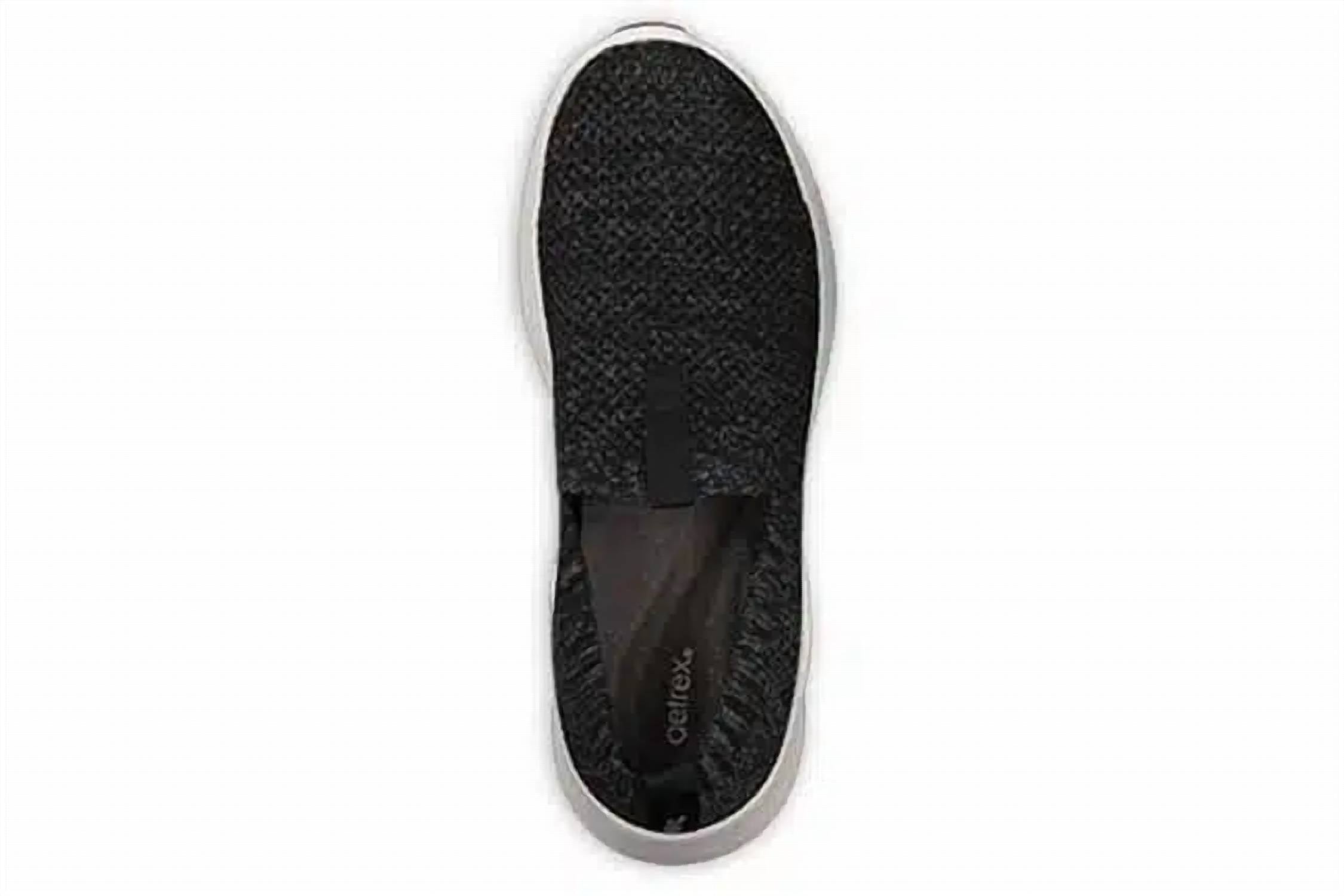 This supportive shoe features built-in arch support to help relieve foot pain and plantar fasciitis. A stretchy knit upper ensures a flexible fit, while cushioned EVA foam and a padded heel provide lasting comfort. Finished with rubber pods for added durability and a removable insole for convenience. Heel height: 0.7".