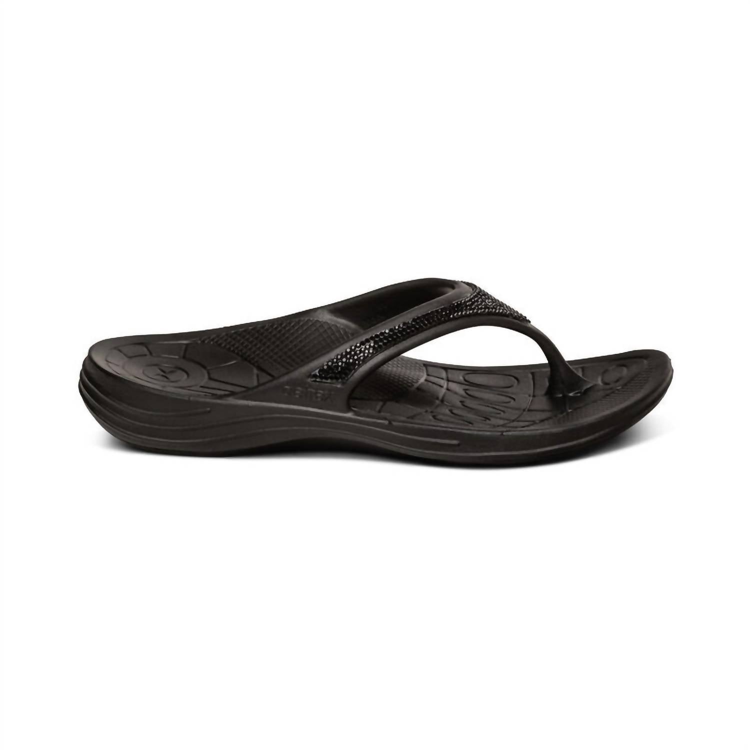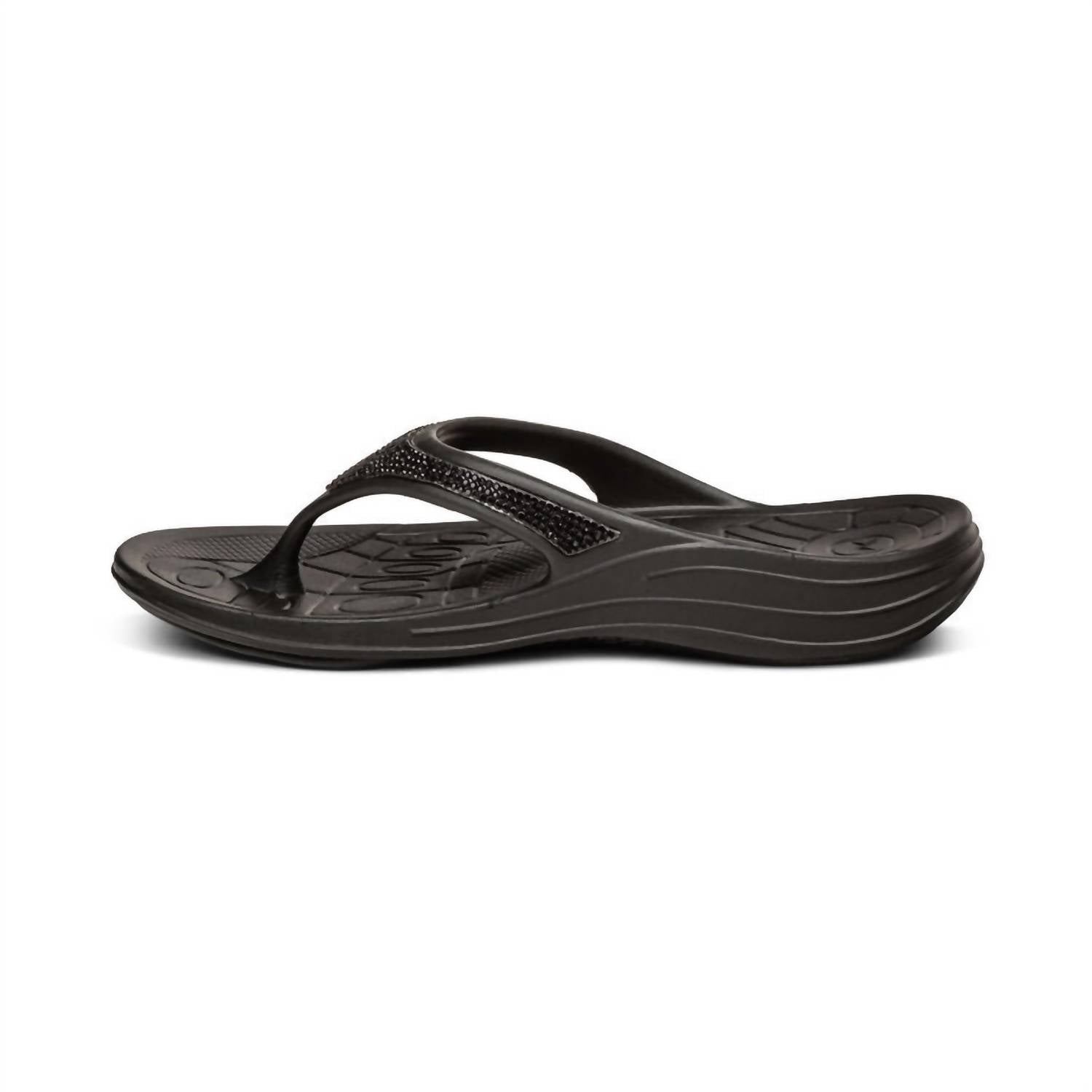 Fiji Orthotic FlipsProduct SKU: L7100W. These water-friendly orthotic flips are made from UltraSky injected EVA to provide extreme cushioning, shock absorption and durability. The toe post is specially designed with super soft foam to keep your toes comfortable all day long. Arch support helps to relieve common foot pain & plantar fasciitis. UltraSky™ to cushion and provide superior comfort. Contoured rearfoot to cradle your heel and relieve pressure. Support pod to help relieve forefoot pressure.