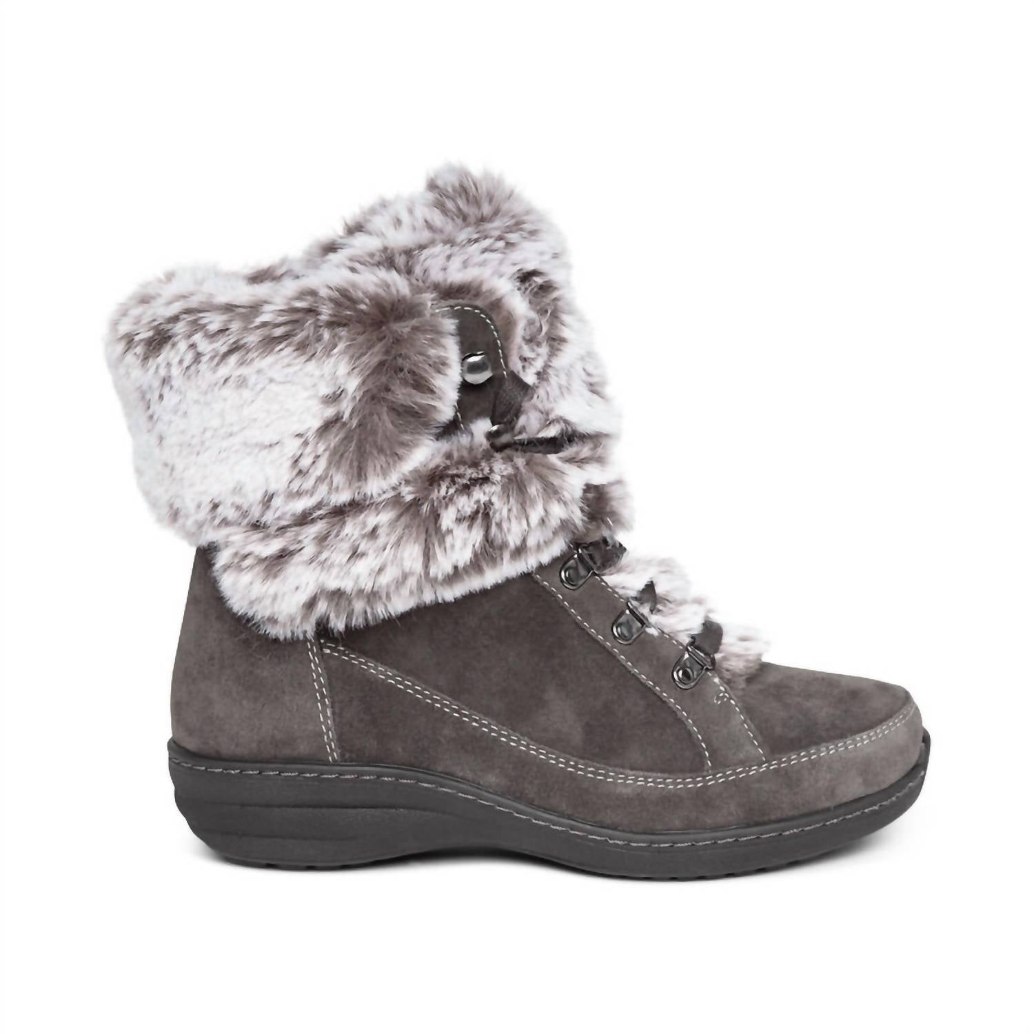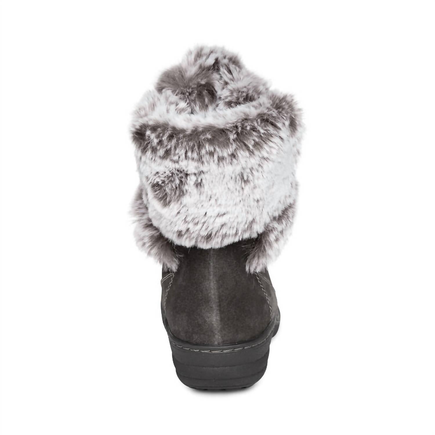 Rainy day? No problem! The cutest and most comfortable rainboots of the season.Mid calf height ankle boot. Adjustability: Laces. Upper Material: Waterproof construction with Genuine Suede and Faux Fur. Padded collar for extra comfort. Slip resistant outsole. Lining Material: Insulate with plush faux fur. Warmth Rating: Up to -20 C/ -4 F. Removable Insole: Yes. Heel Height: 1.125".