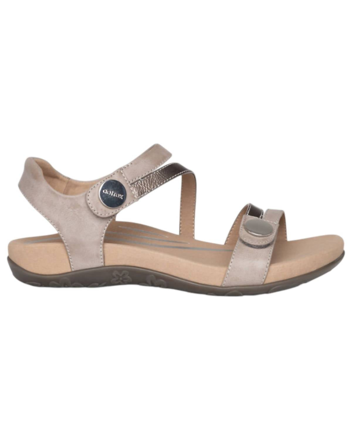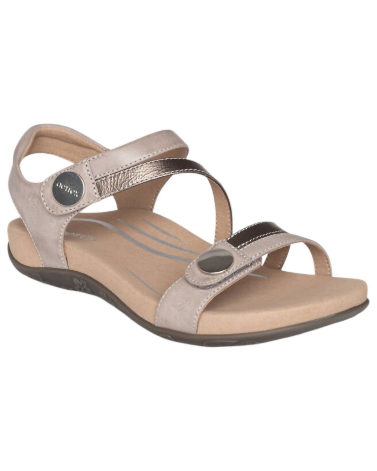 Flowy dresses, cropped pants, and even jumpsuits... this sandal works with them all! Introducing the Aetrex Women's Jess Adjustable Sandals in Pink Sparkle, where comfort meets elegance with an adjustable strap design for a secure fit. Crafted from durable faux leather, these sandals feature a memory foam footbed with built-in arch support to keep your feet comfortable all day. The soft microfiber footbed lining is treated with antimicrobial technology to combat odors, and the rubber outsole offers excellent durability and traction. Care involves a spot clean with a damp cloth; avoid submerging in water.