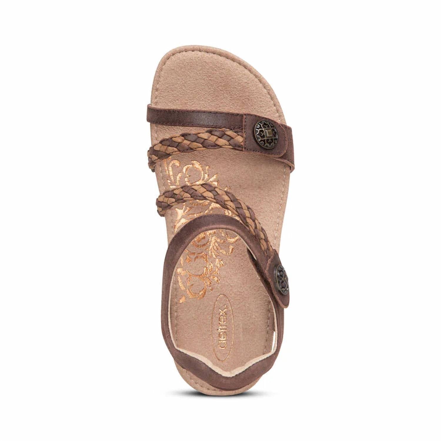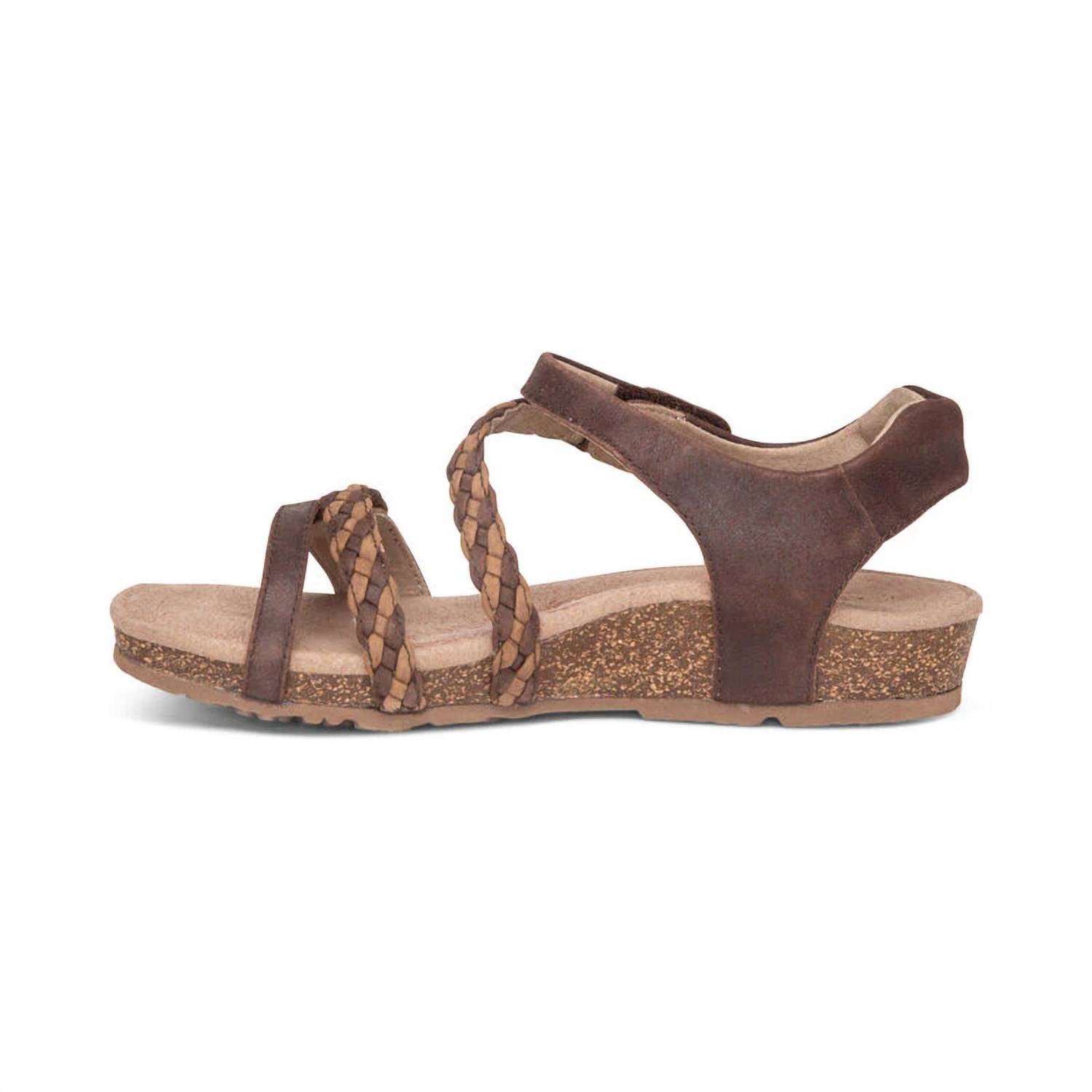 Fully adjustable hook and loop closures quarter strap sandal has a padded heel. Ultra-light cork midsole. Braided detail. Removable insole. 1.125" Heel Height: