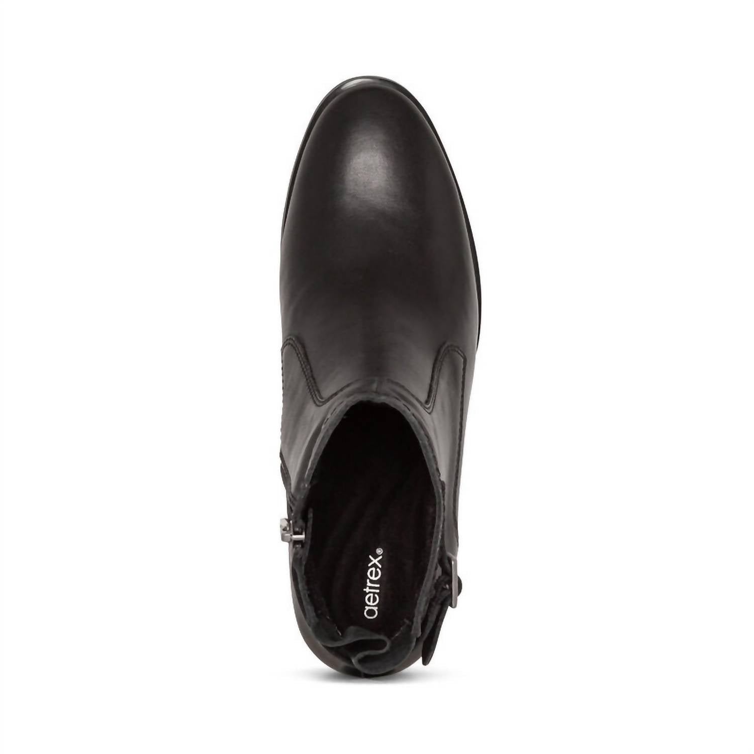 Say hello to the perfect, most versatile boot. The ankle height makes this style easily transition from day to night. Wear them with your favorite skinny jeans and tee for a more laid back look, or pair them with your favorite mini dress and jacket for a night out on the town. Designed with Aetrex's Signature Arch Support incorporated into the footbed, this style provides arch support, promotes heallthy alignment and helps prevent causes of common foot pain. Ankle height boot with adjustable ankle straps. All materials thoroughly treated to help protect against rain and puddles.