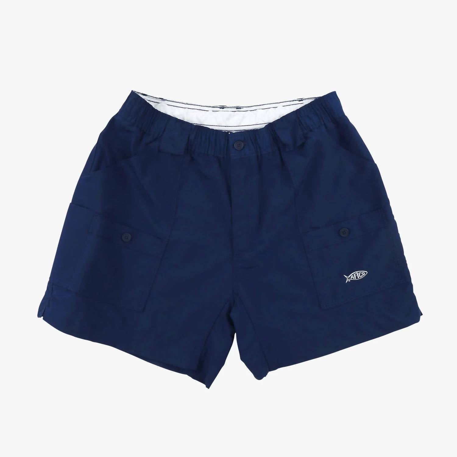 The Original Fishing Short by AFTCO, available in a classic navy, is designed for serious anglers who value practicality and comfort. Made from durable 3-Ply Dupont Supplex Nylon, this cargo short features a stretch elastic waistband and a zip closure, with a relaxed fit that offers a 16" outseam and a 6" inseam. With seven functional pockets, including a Cordura lined pliers pocket, and a double-lined seat, these shorts are built for durability and movement. They are machine washable and can be tumble dried, making them easy to care for, perfect for a summer vacation.