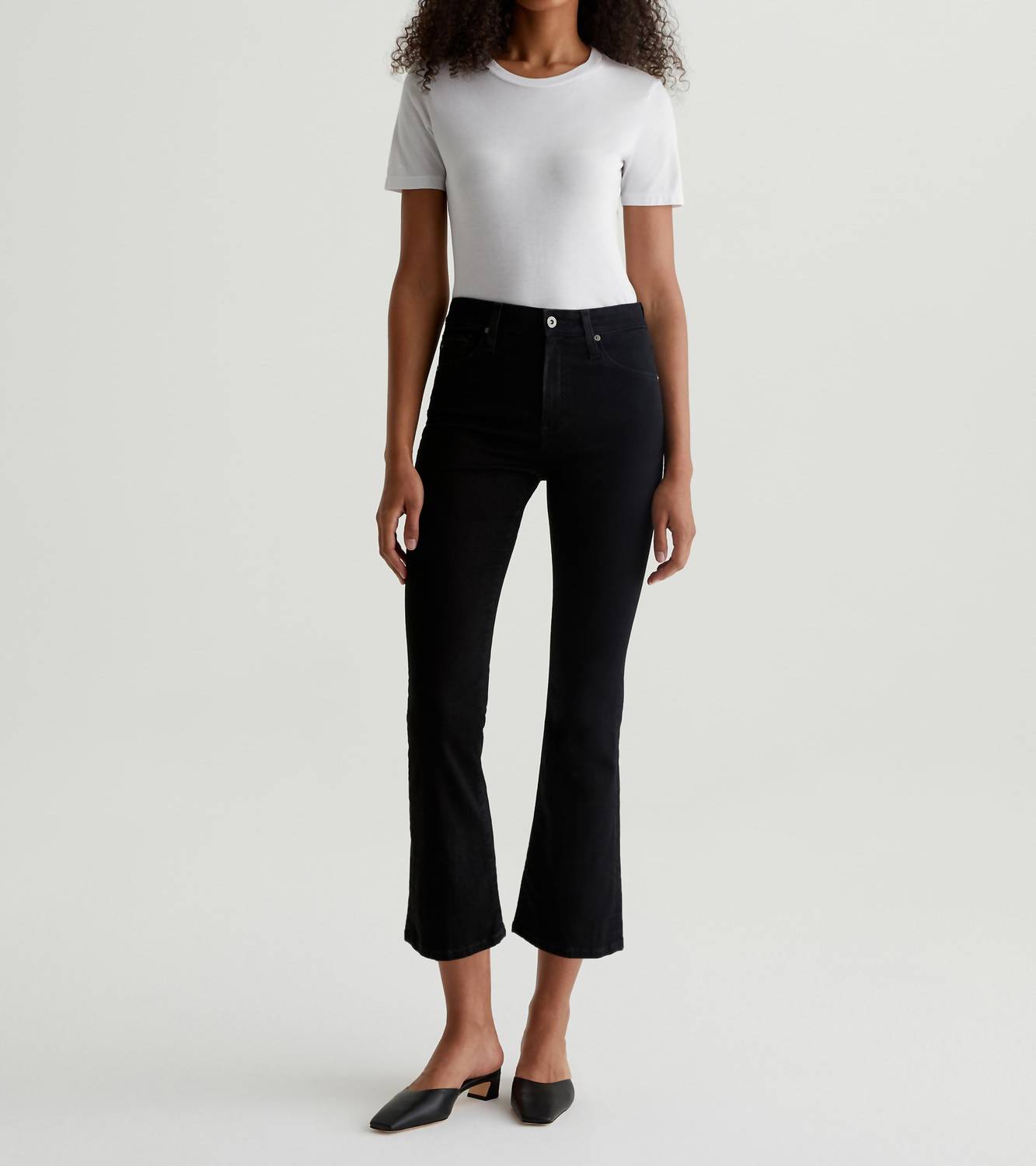 A boot-cut jean that not only looks good on, you'll be comfortable in them all day. Introducing the Farrah Boot Crop Jeans by AG Jeans, combining modern style with a classic silhouette. These mid-rise jeans in a striking Alchemy color feature a regular fit and a flattering bootcut leg, making them perfect for any occasion. Crafted from a comfortable cotton blend, they offer a practical zip closure and handy pockets. With a 10” rise and 27” inseam, care is a breeze with machine wash and tumble dry instructions.