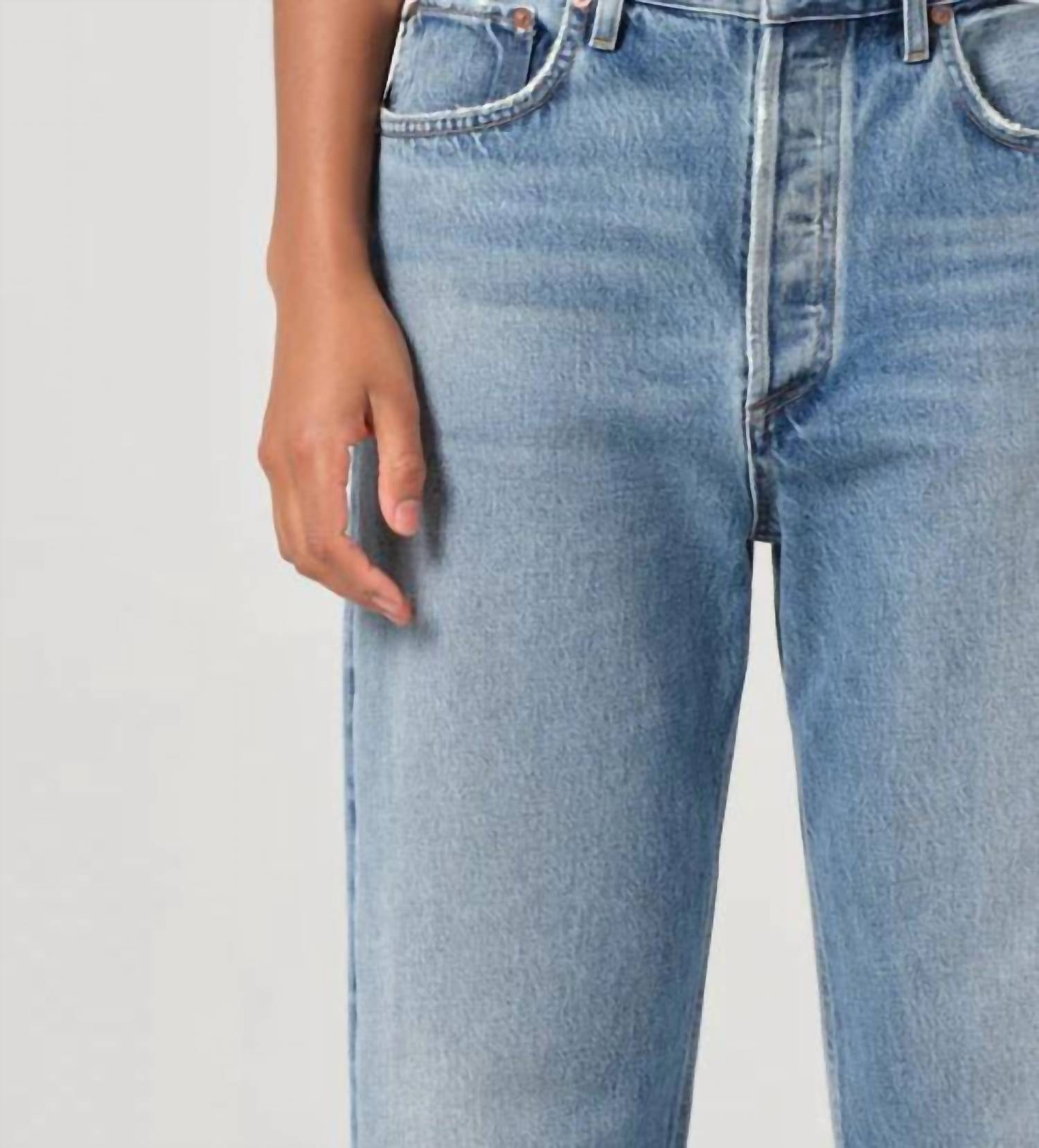Nod to retro-inspired style with its low-slung, relaxed fit. Crafted from 100% regenerative cotton. Feature a true medium vintage indigo wash and untacked folded cuffs for a casual vibe. With a 12.25" rise, 26.5" inseam, and a 17.25" leg opening. Boast a rigid, zero-stretch feel that's soft to the touch. Made in Turkey. Straight-leg design is finished with a button fly closure. Best cared for by machine washing cold inside out with like colors and tumble drying low. Model is 5'10" and wearing a size 27.