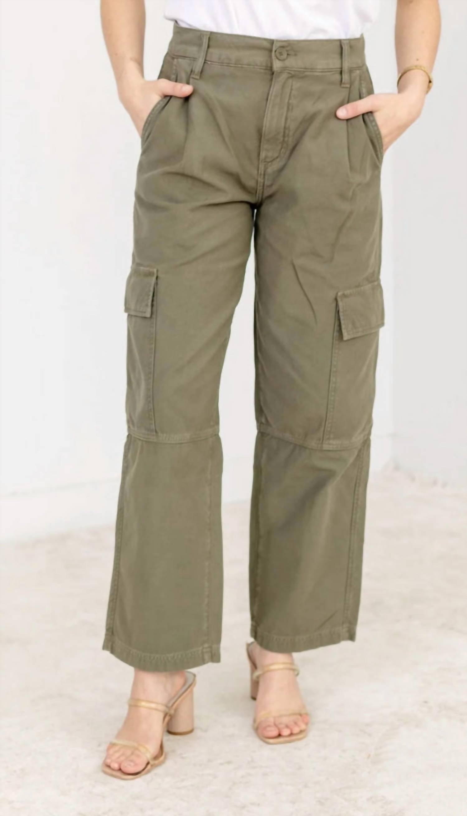 Experience the AGOLDE Jericho Pant in Fatigue, a perfect fusion of style and sustainability for women. Crafted from 100% regenerative cotton, these wide-leg pants are designed with a functional 4-pocket and cargo pocket layout. They boast a versatile 18" knee width that narrows to a 16" leg opening, offering a modern grunge look. Made in Turkey with a zip fly and button closure, they are convenient for everyday wear and machine washable for easy care.