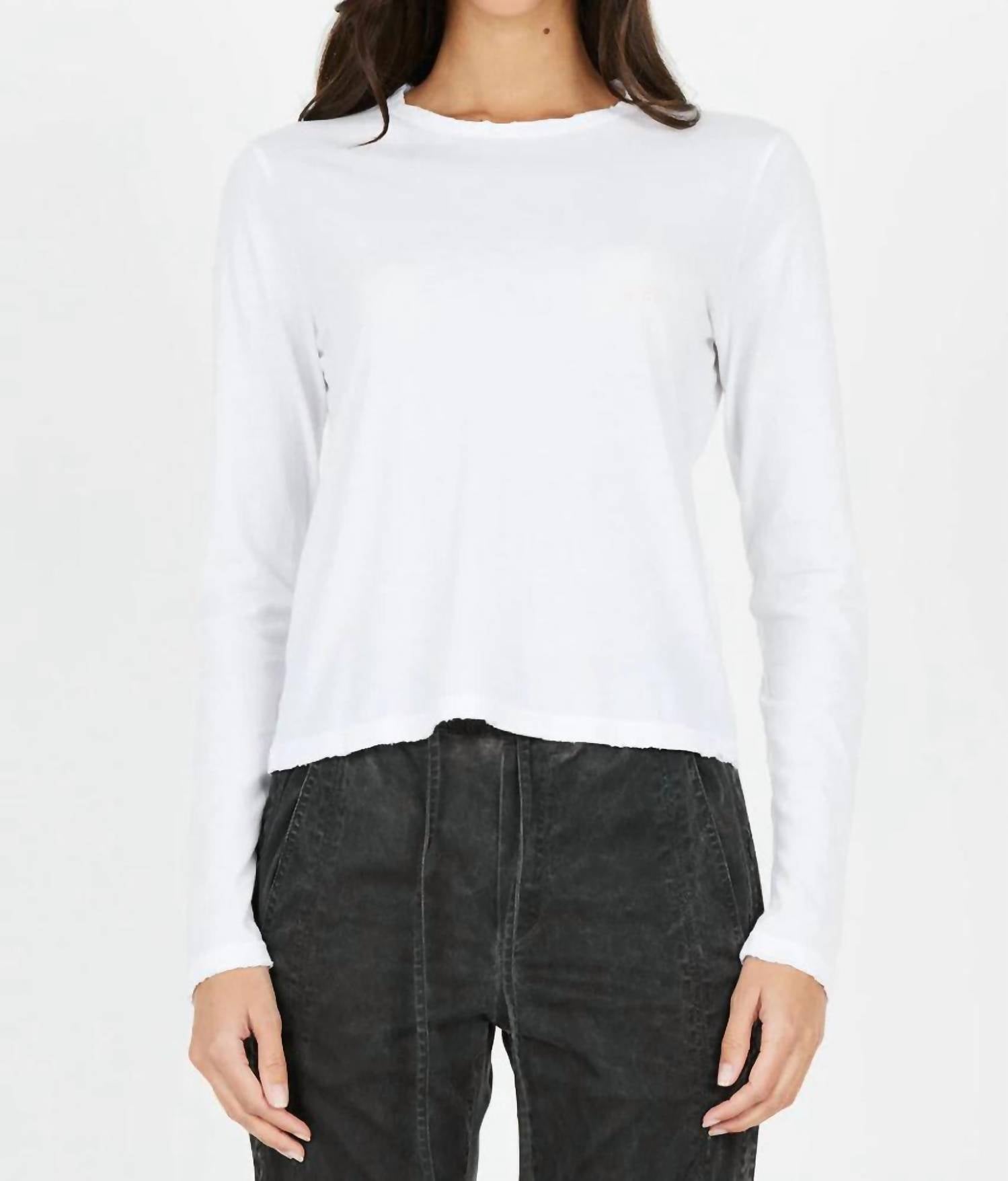 Great fit, cute design, soft fabric. You'll love everything about this long sleeve tee. Experience the ultimate in casual elegance with the Long Sleeve Crewneck Tee by AGOLDE. Made from luxurious 100% SUPIMA cotton, this relaxed fit tee features a classic crew neckline in a solid white hue. Enjoy the vintage wash and clean finish hems that add a chic touch to your spring wardrobe, perfect for travel occasions. Closure: Pull-on.