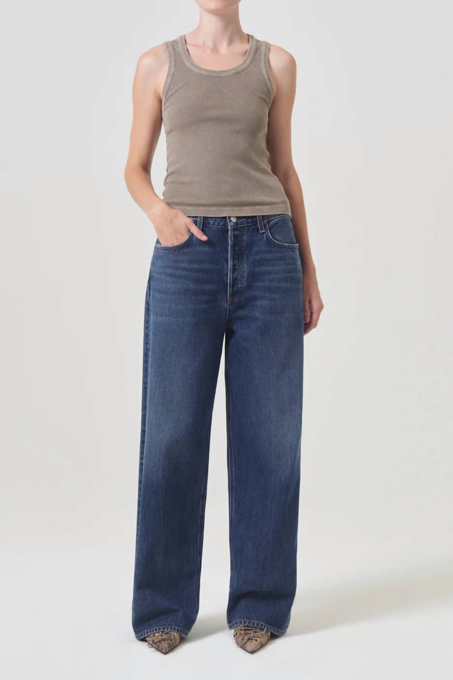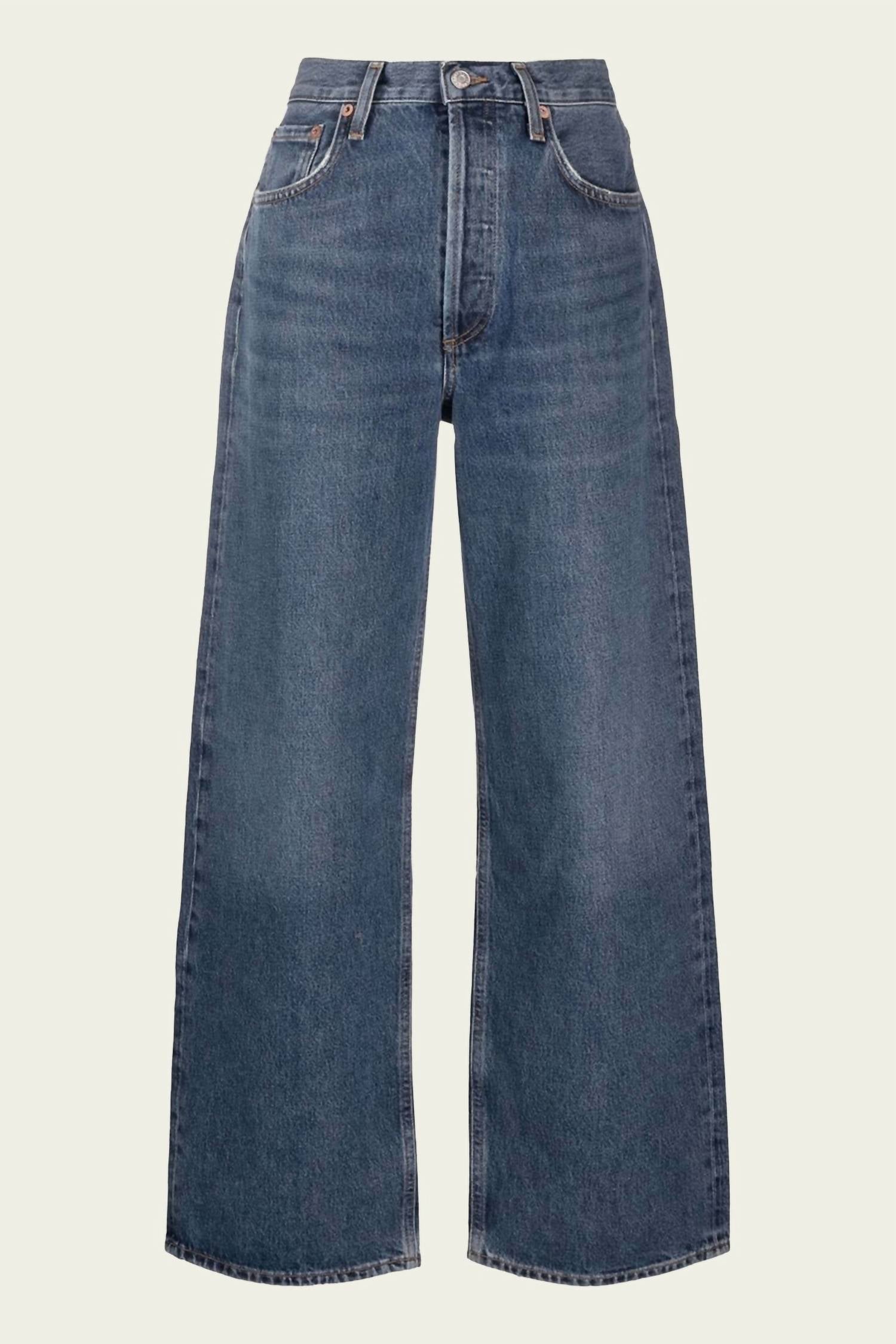 Pair these straight leg jeans with flats, sandals or even heels! You can't go wrong. Introducing the Low Slung Baggy Jean by AGOLDE, designed for effortless style and comfort with a low-rise fit. Crafted from 100% organic cotton, this solid pattern denim is made in Turkey and features a button closure. The jeans offer a straight leg style with a 30.5-inch inseam and pockets for practicality. Care instructions include machine washing for easy maintenance, making this a fantastic addition to your summer wardrobe.