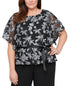Get ready to celebrate in this stunning tiered plus-size blouse from Alex Evenings| detailed with a floral burnout pattern and fluttery sleeves.| Approx. 24 long from center back neck to hem. Length is based on size 2X and varies 1/4 between sizes| Jacquard; Textured and structured| Scoop neck| Tiered asymmetrical hem| Short flutter sleeves