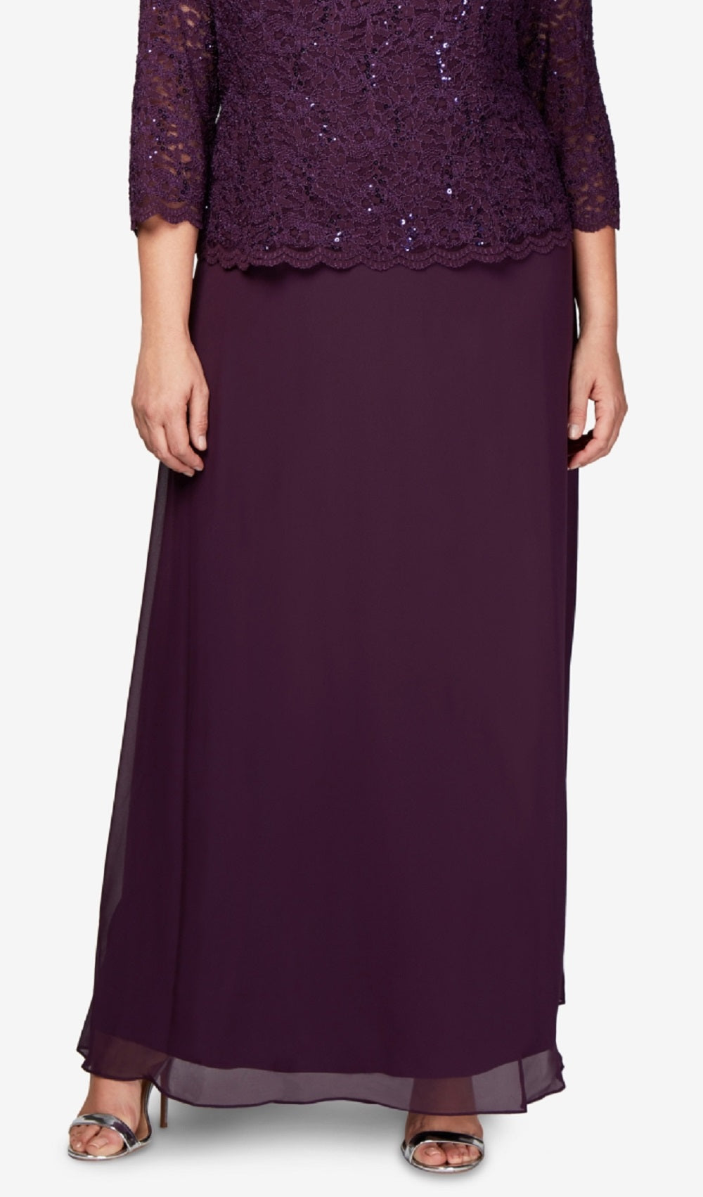 Alex Evenings Women's Mock Two Piece A Line Gown Purple Size 22W