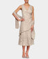 Alex Evenings Women's Printed Tiered Hem Dress & Shawl Brown Size 14