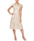 Make a refined statement in Alex Evenings' A-line midi dress styled with soutache embellishment and floral embroidery for gorgeous texture and detail.| Approx. 35-3/4 long from center back neck to hem. Length is based on size 8 and varies 3/8 between sizes| Scoop neckline; A-line silhouette | Hidden back zipper closure | Cap sleeves| Allover soutache embellishment and floral embroidery