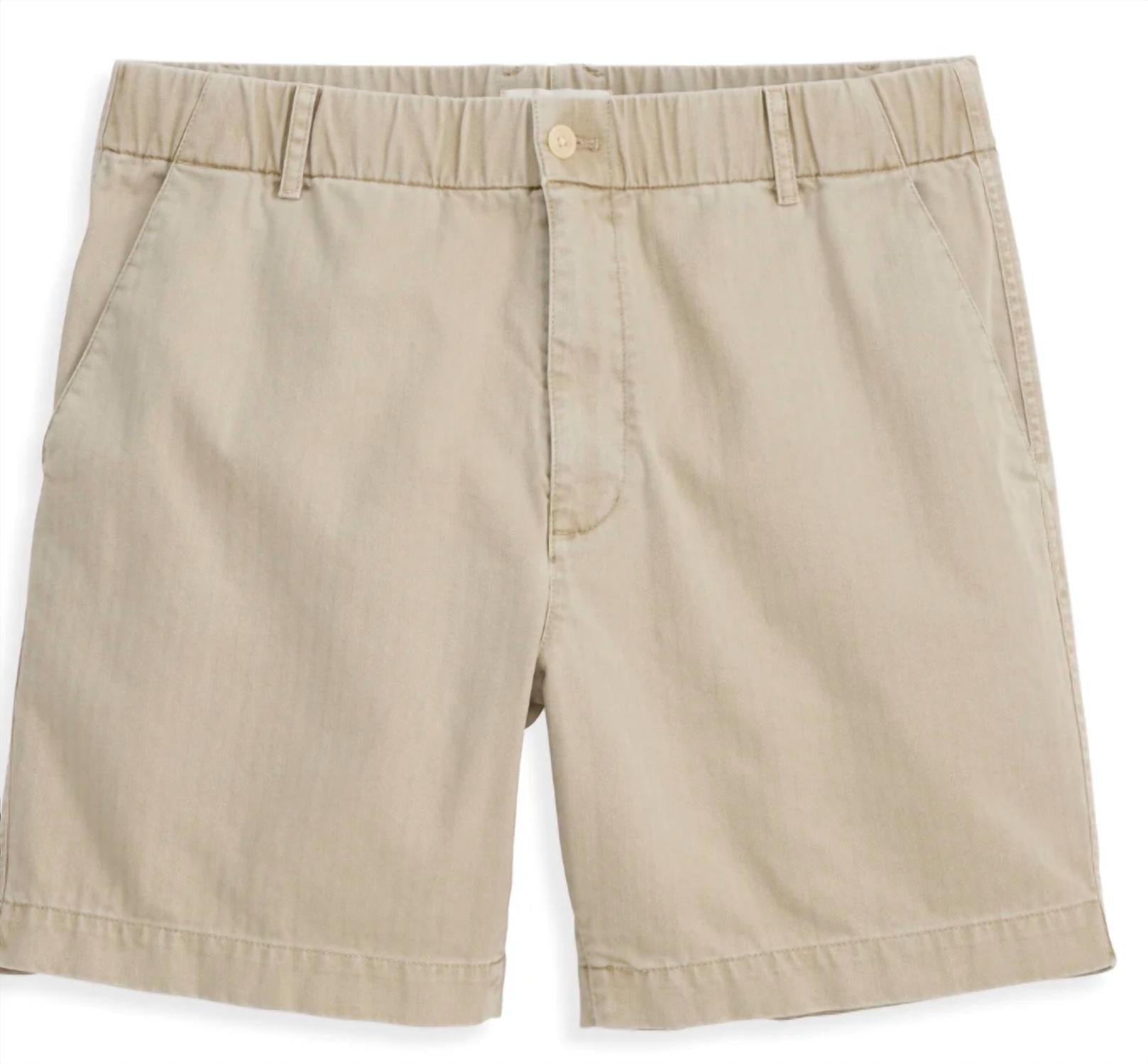 Embrace effortless style with the ALEX MILL Pull On Short in Stone, perfect for travel and warm summer days. Crafted in China from breathable cotton herringbone, these solid, regular-fit shorts feature a practical hidden drawstring and elastic waist for comfort. The mid-rise, straight-leg design boasts a convenient button closure and pockets, with an 18-inch inseam for classic appeal. Easy to care for, just machine wash these shorts and enjoy them throughout the season.