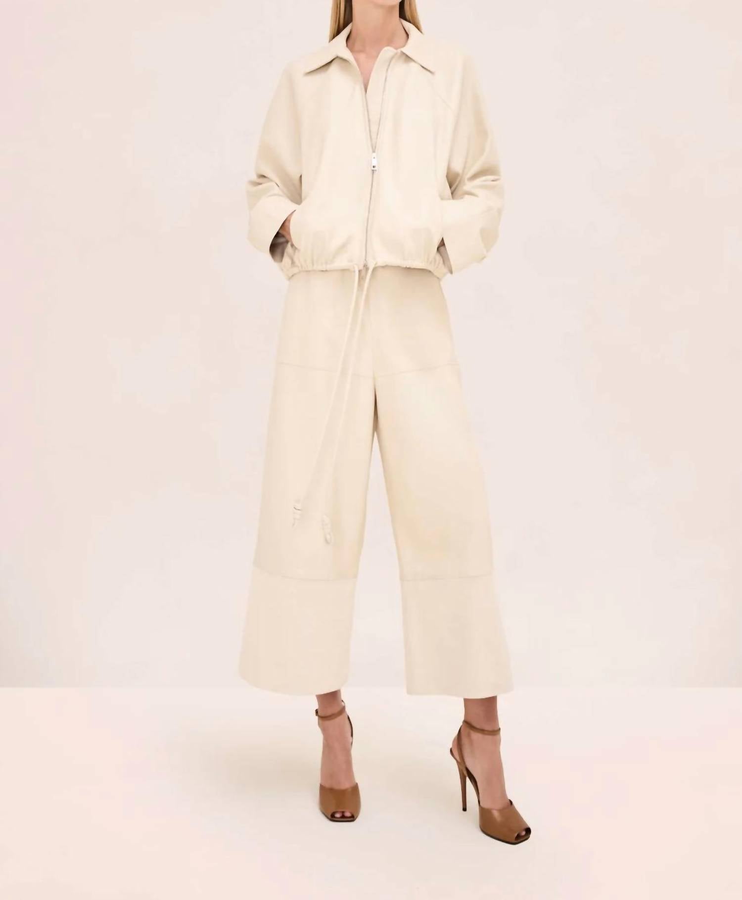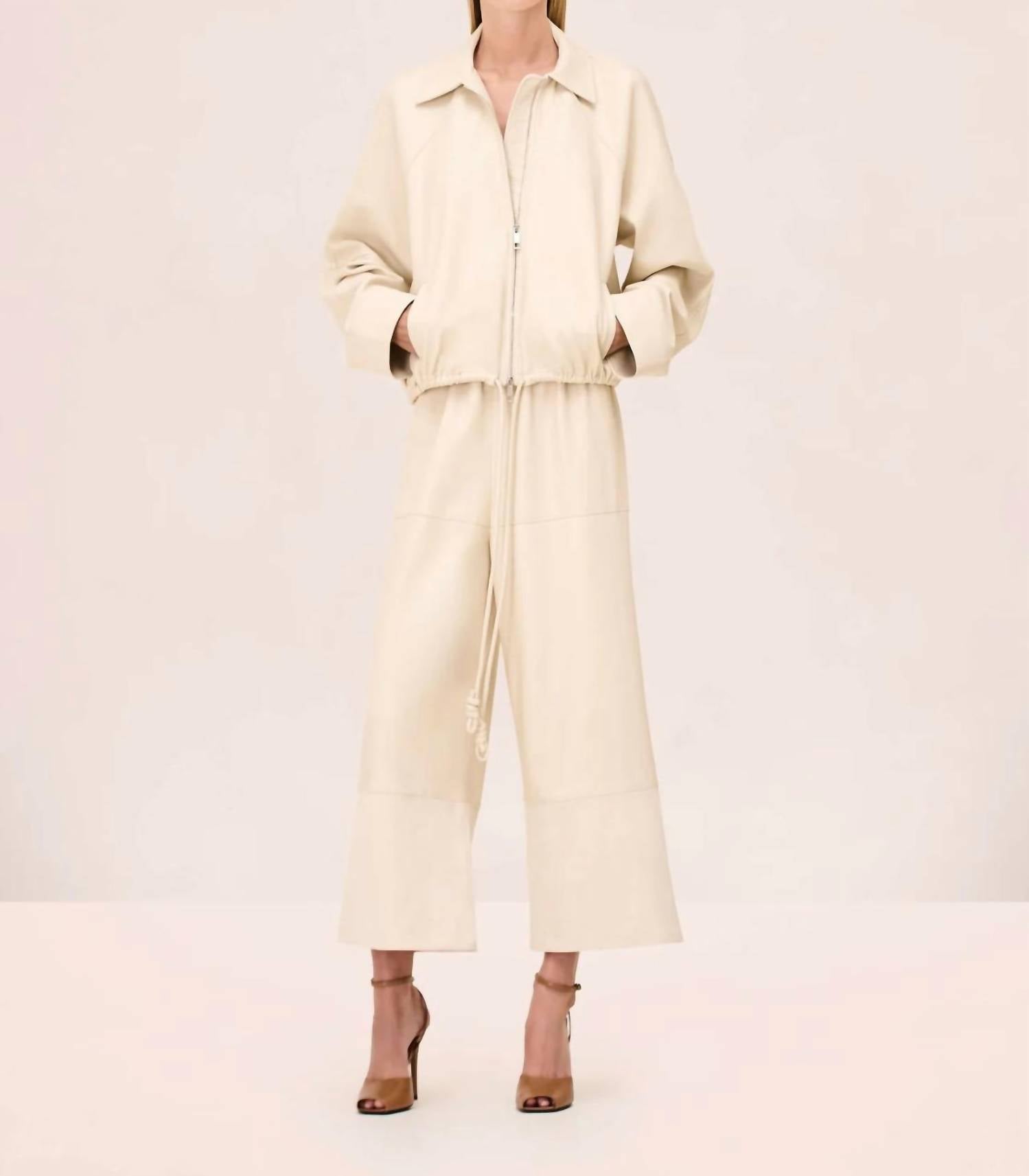 Meet the Jacob Pant by ALEXIS, designed in a chic beige hue, perfectly embodying minimalist trends for the spring season. These women's wide-leg, cropped trousers offer a solid pattern and convenient pockets, making them an ideal choice for a dinner party. Closure: Pull On. Designed to pair seamlessly with the Channing Jacket, you can style these pants effortlessly. Model is wearing an XS (5'10" height, 34B bust, 25" waist, 35" hips).