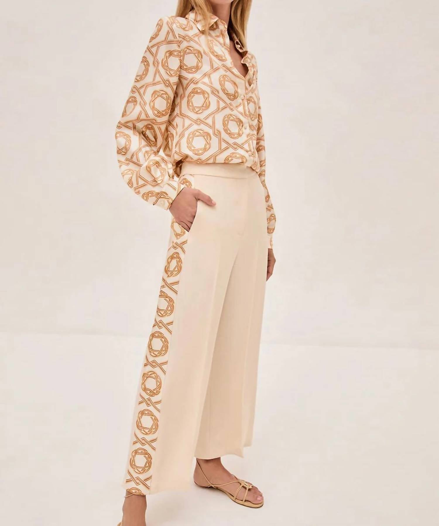 Elevate your style with the Luzon Pants by ALEXIS, featuring a high-waisted design and a relaxed, wide-leg fit. In a striking ivory with orange side stripe detail, these patterned pants offer a modern twist to tailored sophistication. Crafted for women, they include practical pockets and secure with a zip closure. Perfect for both workdays and weekend outings, these pants are a chic choice for a dinner party or Mother’s Day event.