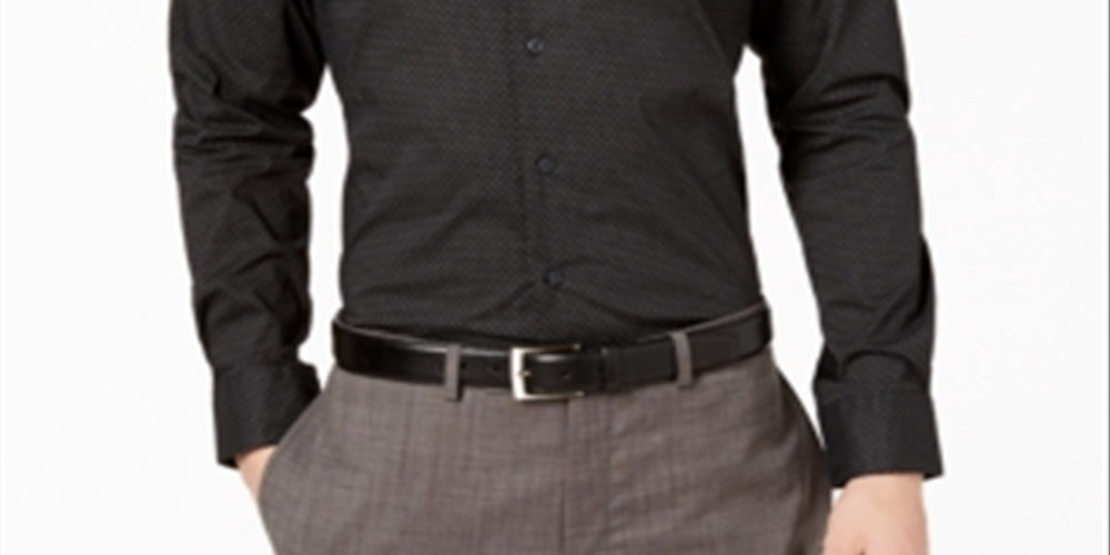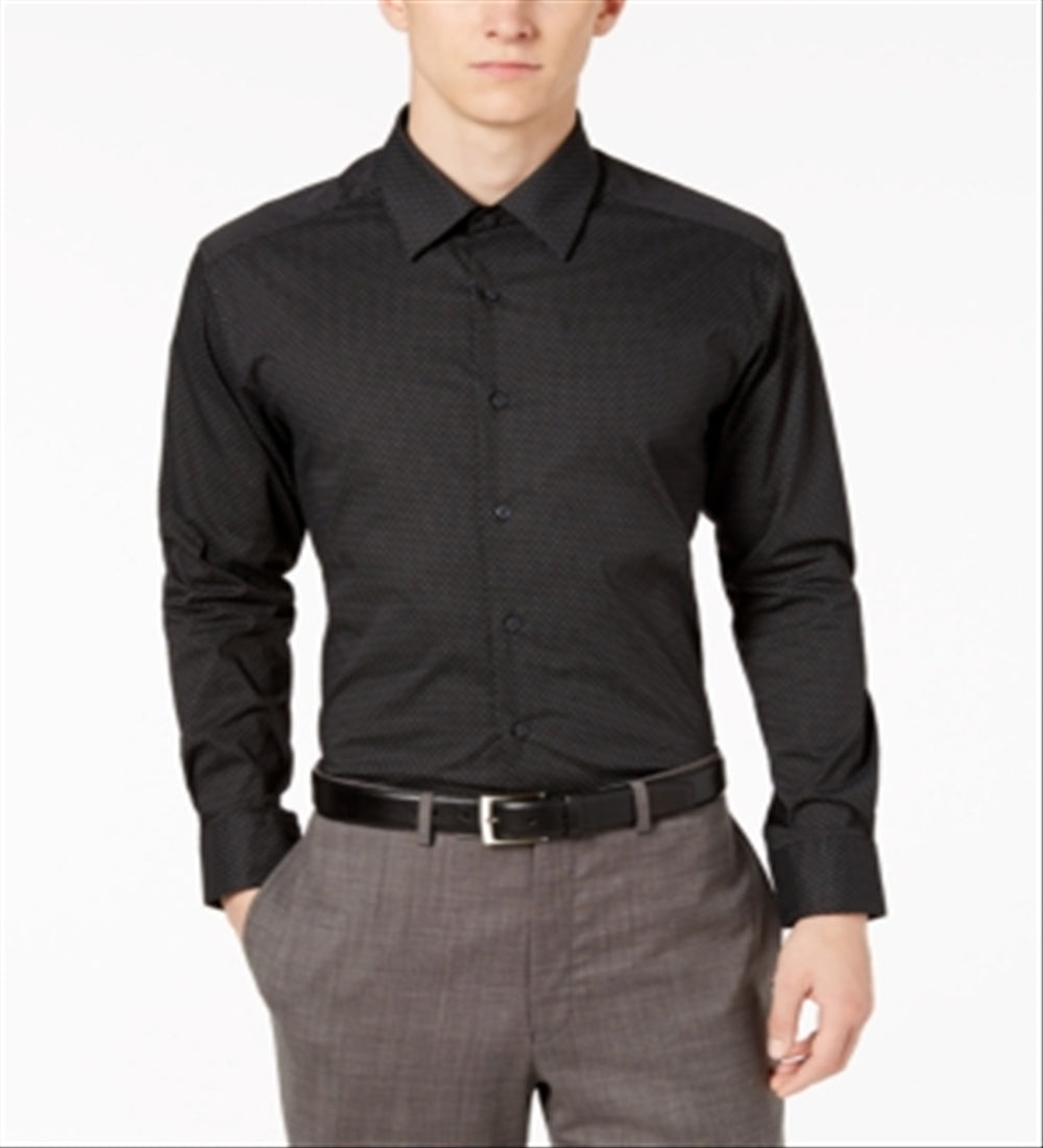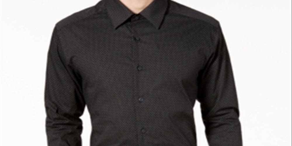 Alfani Men's Diamond Eye Button up Dress Shirt Black Size 18.5X34X35