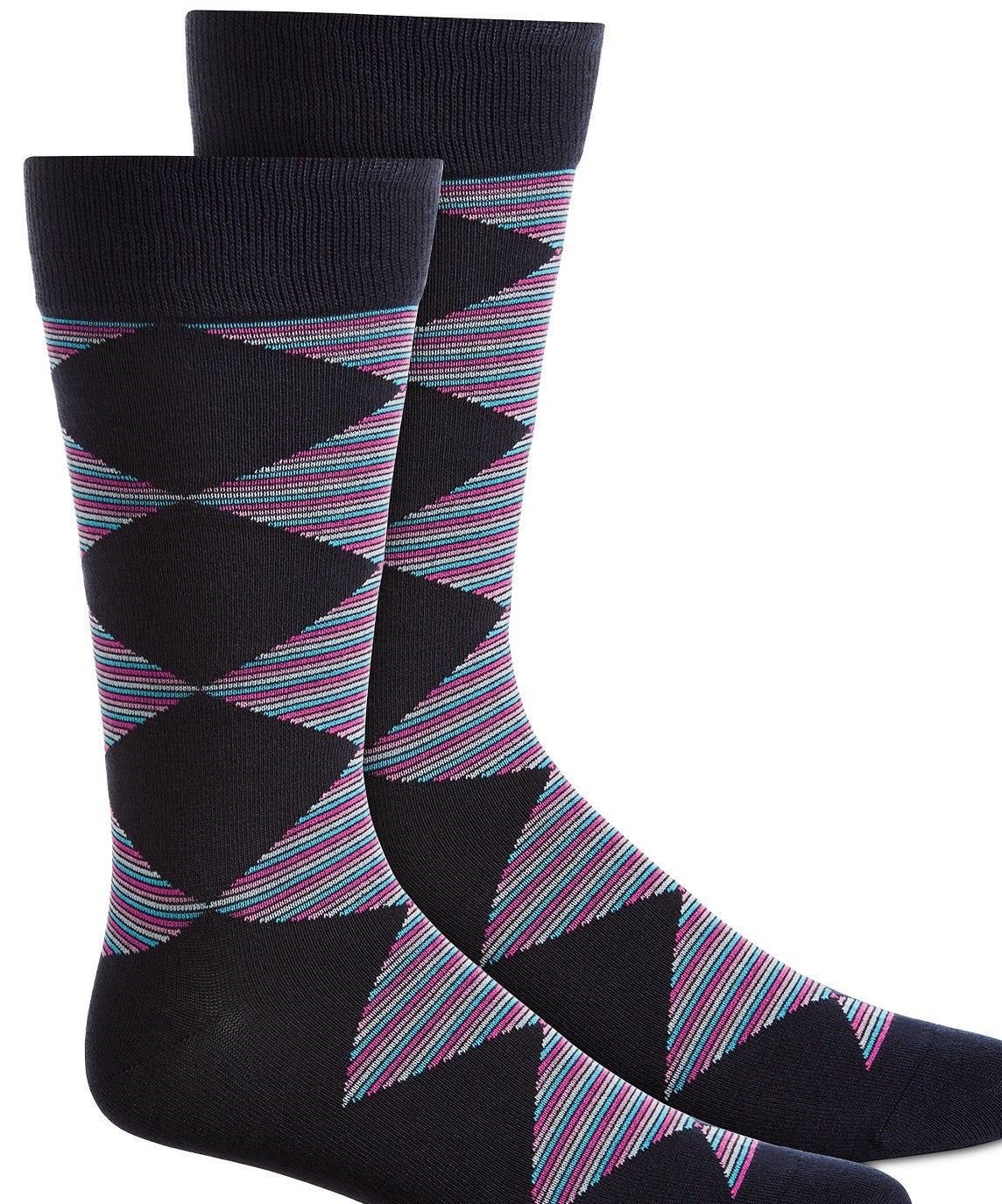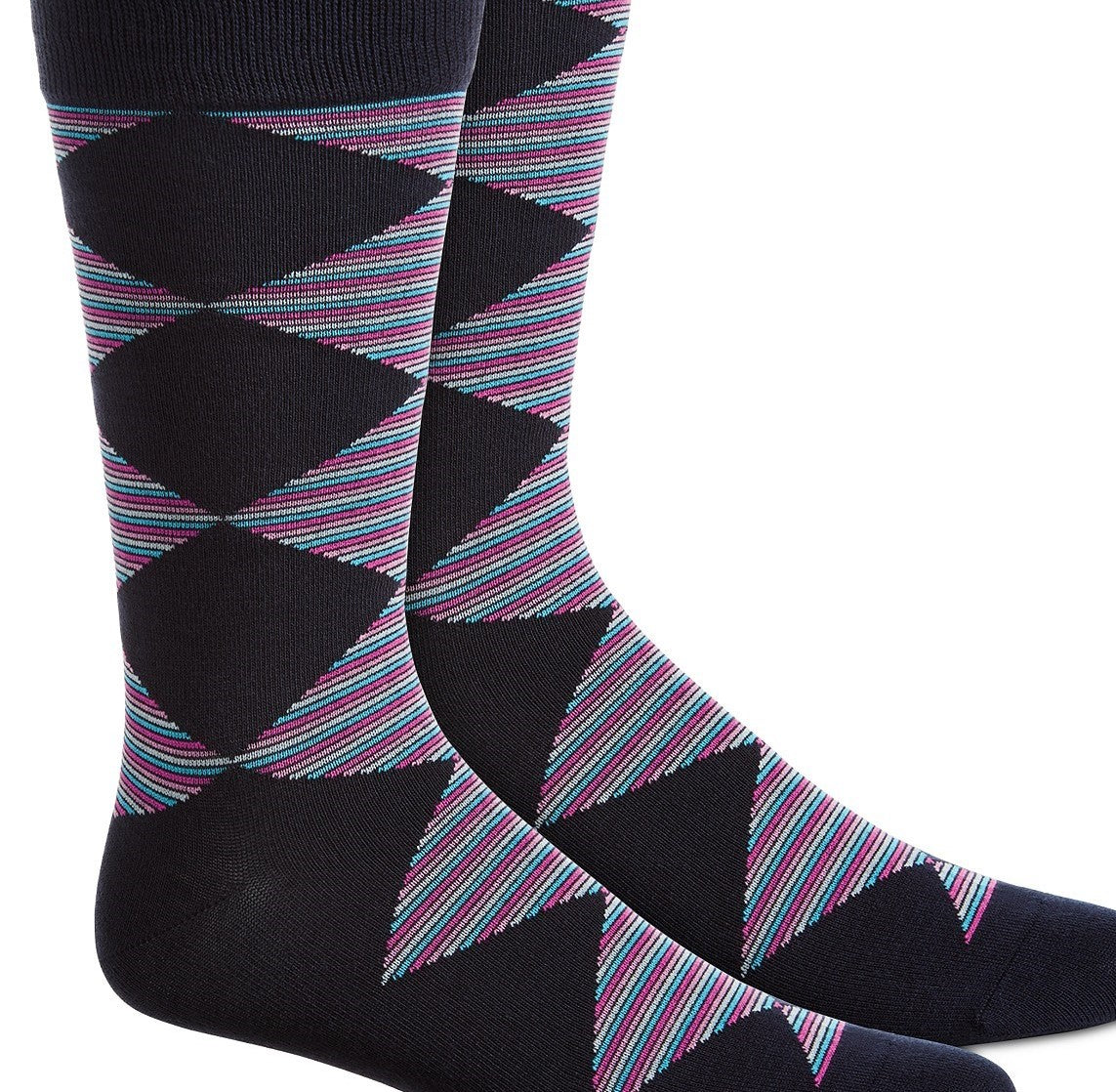 Alfani Men's Diamond Striped Socks Blue Size Regular