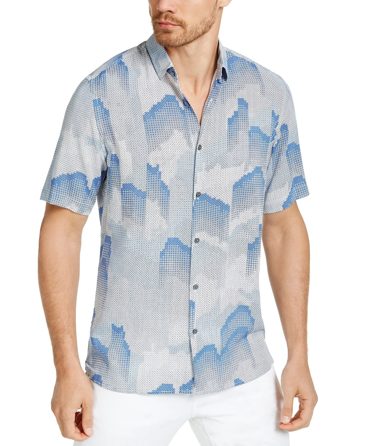 Classic fit|Point collar|All-over geo print detail|Rayon|Machine washable