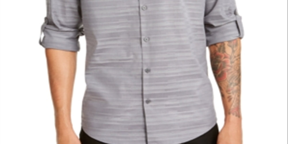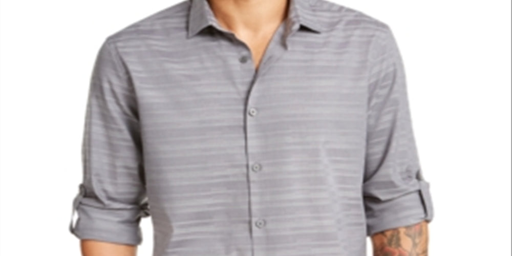 give your laid-back look a lift with the stylish linear dobby and adjustable roll-tab sleeves of this classic-fit shirt from alfani