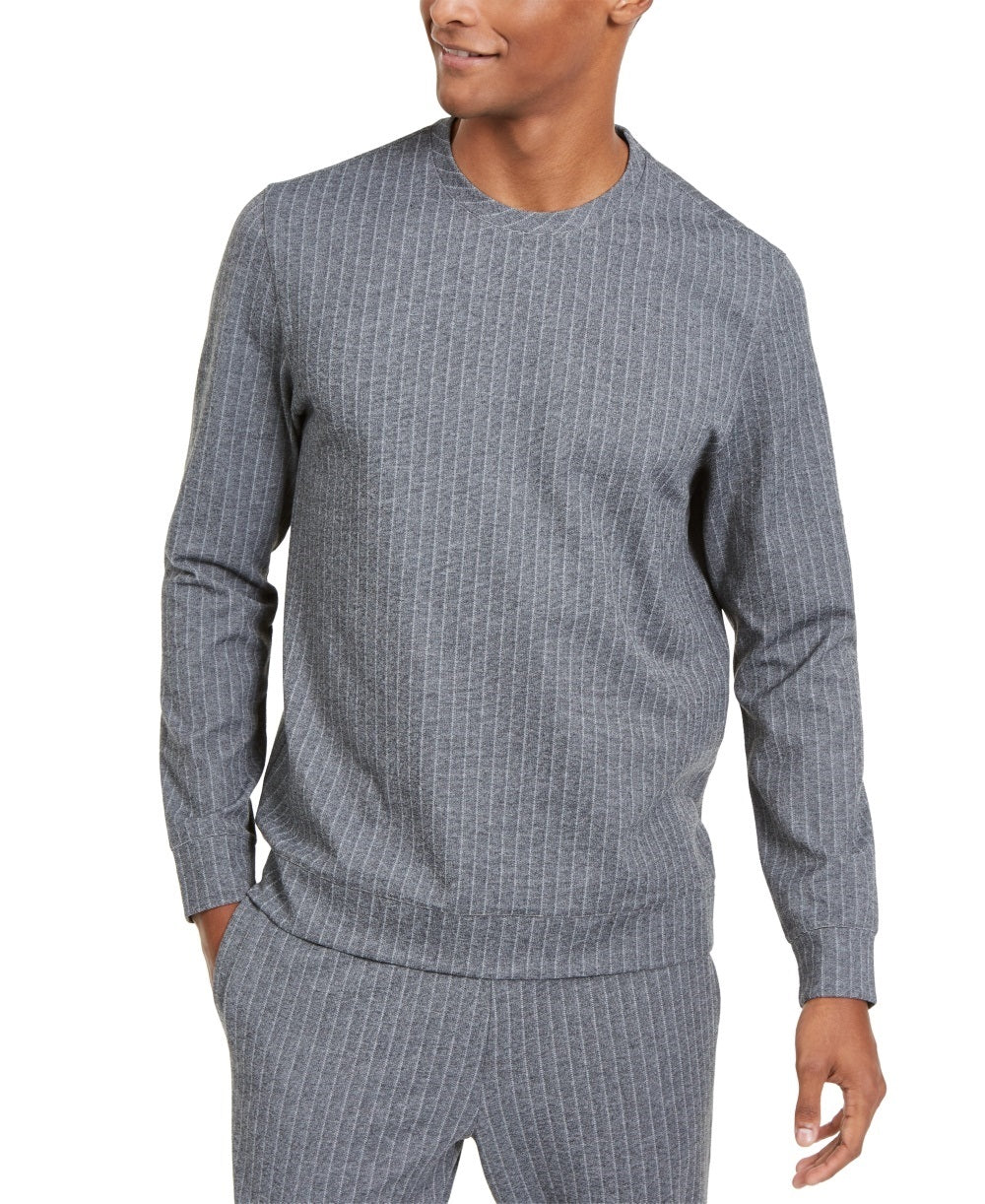 Alfani Men's Pinstripe Stretch Crew Sweatshirt Black Size X-Large