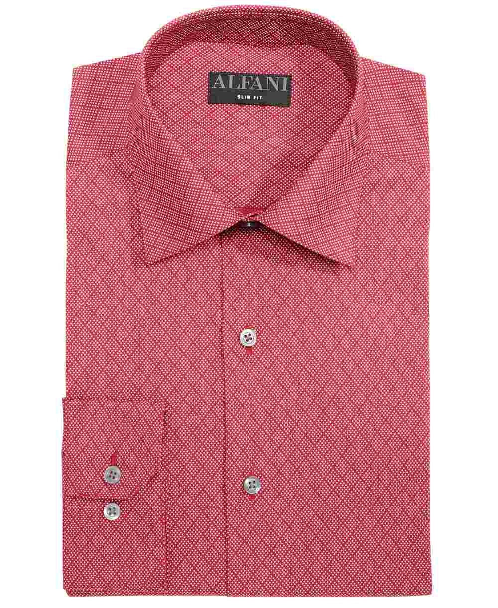 Alfani Men's Red Patterned Collared Dress Shirt Red Size 16.5- 32/33