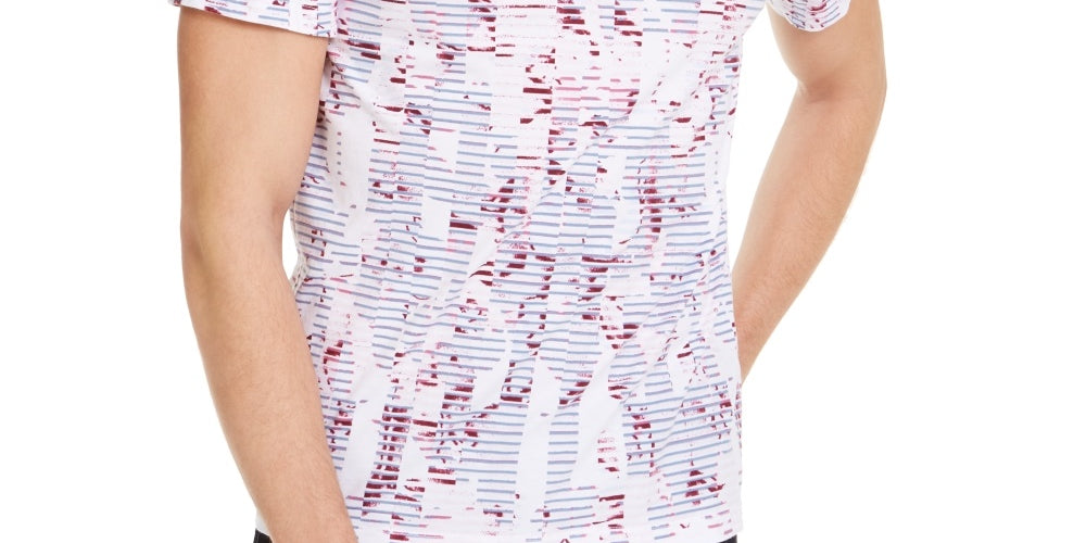 Alfani Men's Ribbed Trim Printed Polo Shirt White Size Large