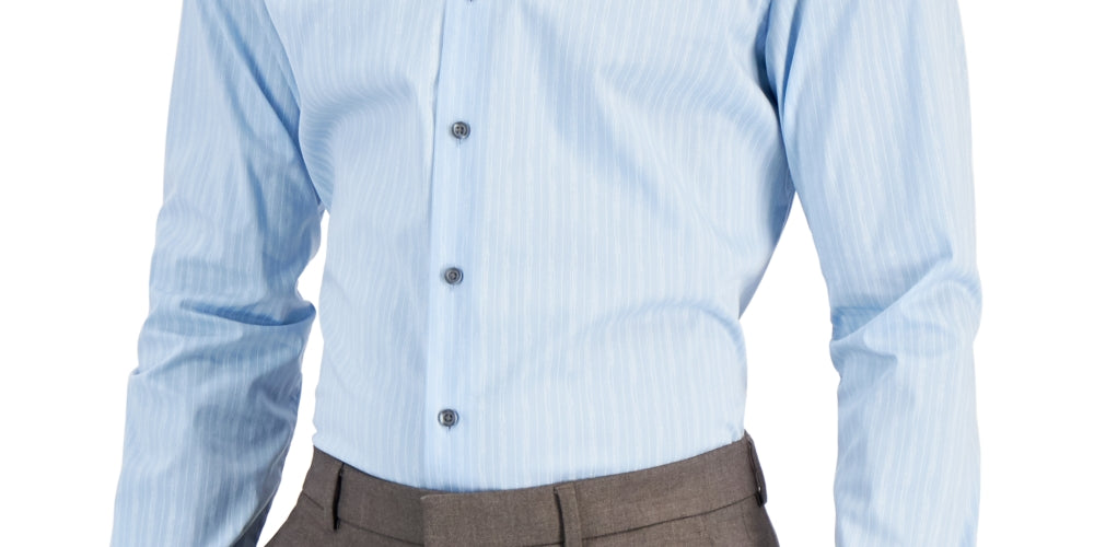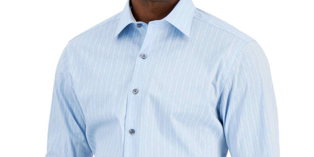 Alfani Men's Slim Fit Stain Resistant Dress Shirt Lt Blue White Navy 15-15 1/2
