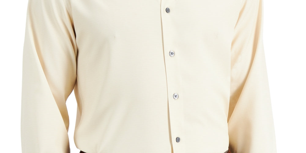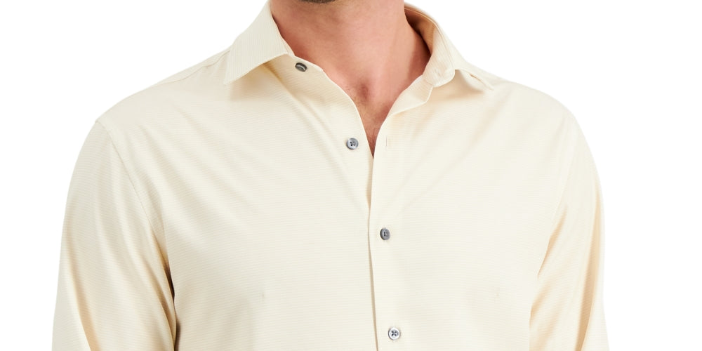 Alfani Men's Slim Fit 4 Way Stretch Geo Print Dress Shirt Beige Size 32X33