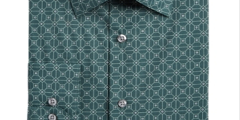 Alfani Men's Slim Fit Performance Stretch Square Tile Print Dress Shirt Green Size XL