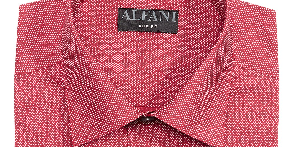 Alfani Men's Slim-Fit Performance Stretch Easy-Care Dress Shirts Red Size 34-35