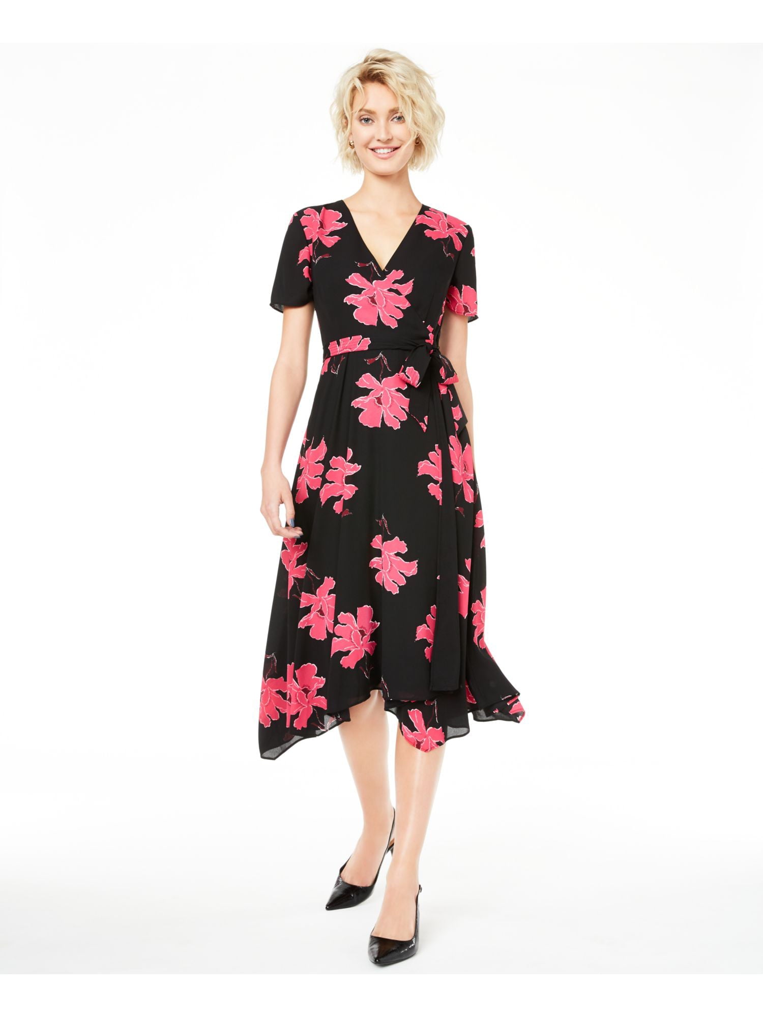 Alfani Women's a Line Floral Chiffon MIDI Dress Black Size 2 Petite