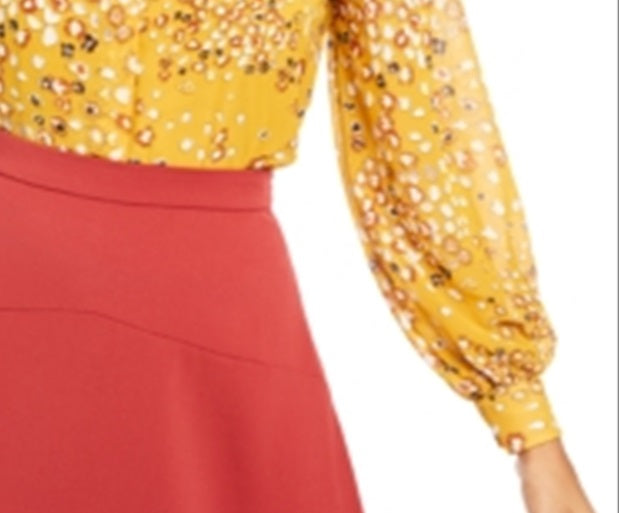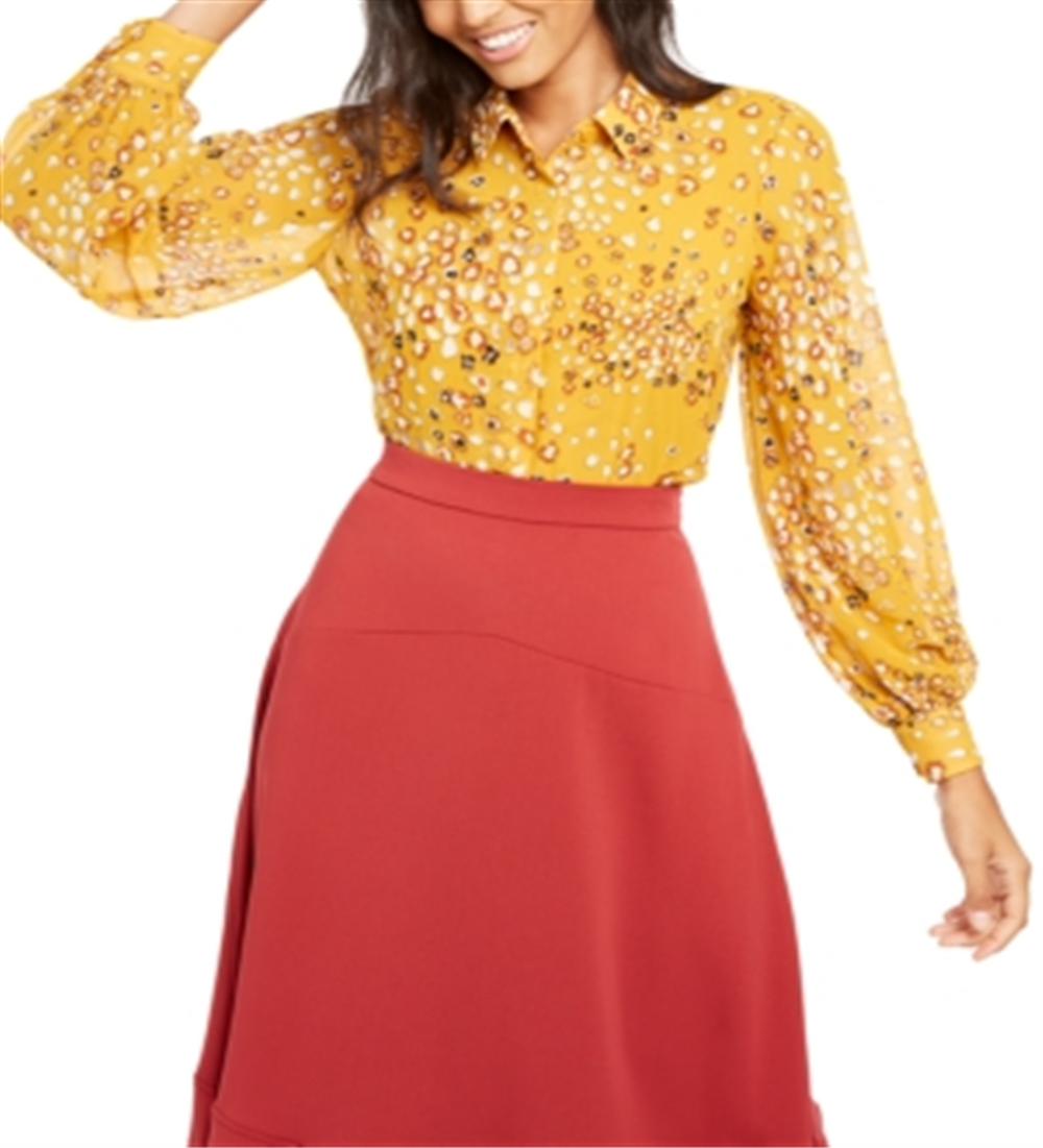 Alfani Women's Animal Print Shirt Yellow Size Petite L