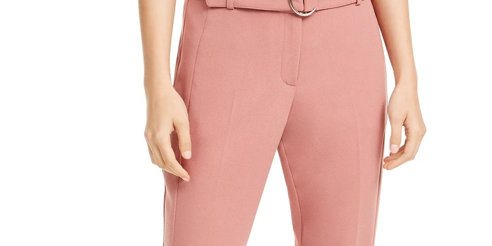 Alfani Women's Belted Straight-Leg Pants Med Pink Size 10