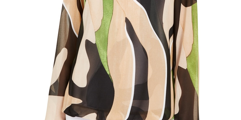 Alfani Women's Blouse Bubble Hem Printed Beige Size Small