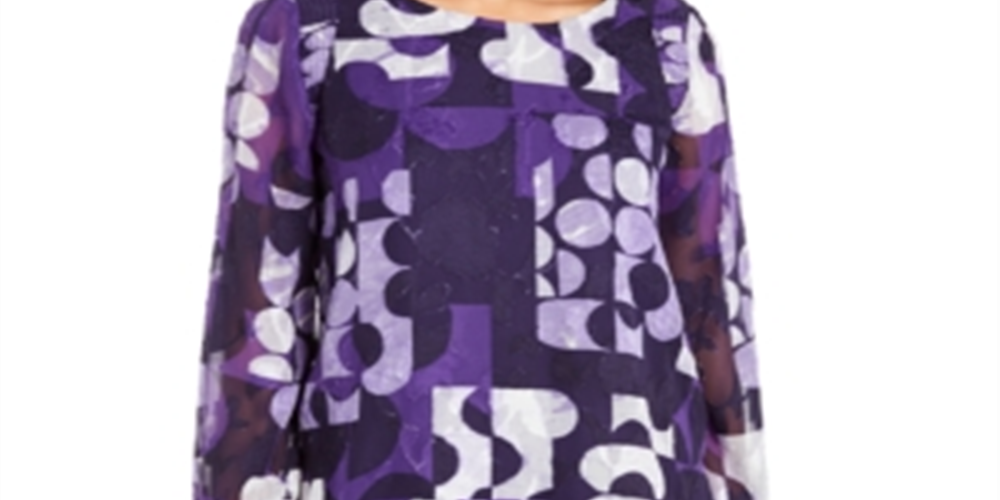 Alfani Women's Burnout Smocked Tunic Top Purple Size XS