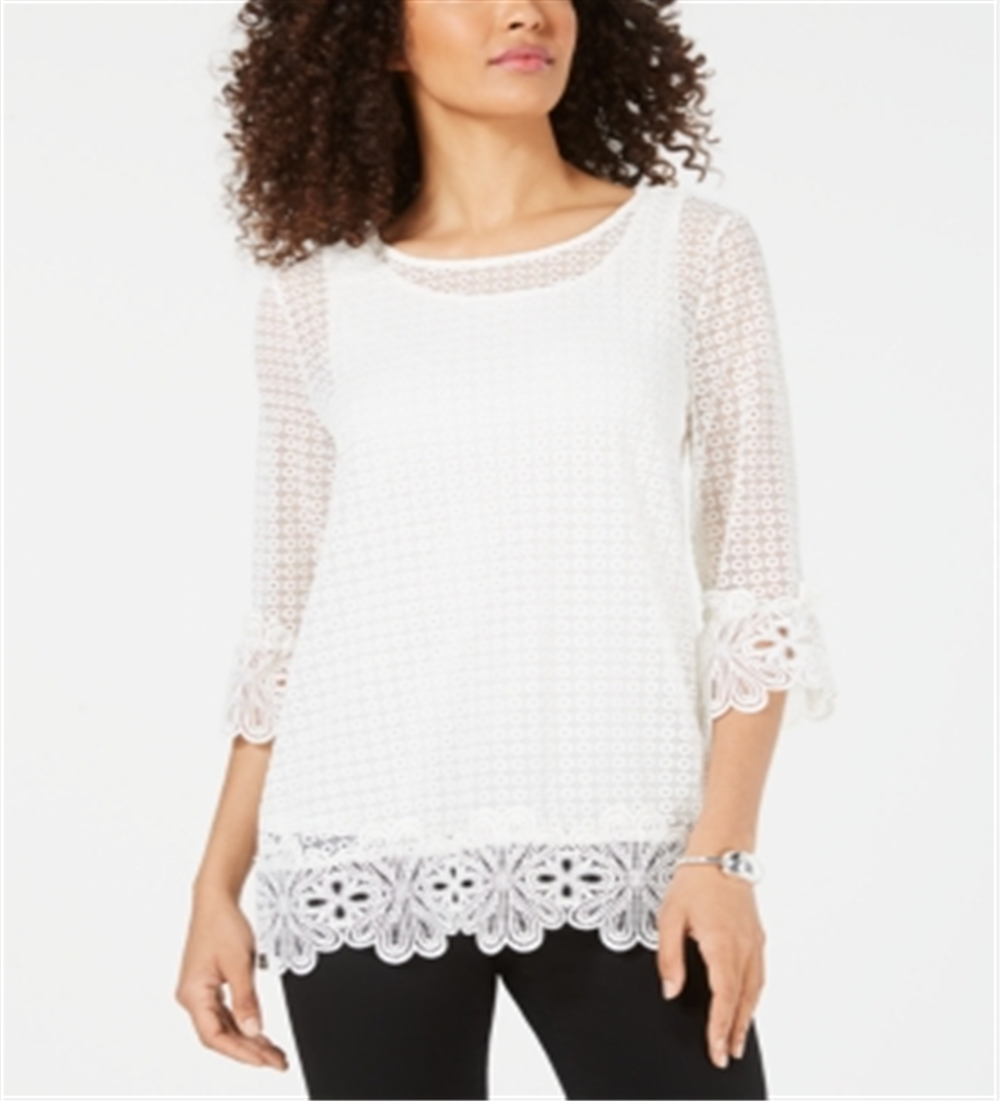 Alfani Women's Crochet Lace Top White Size Petite Medium