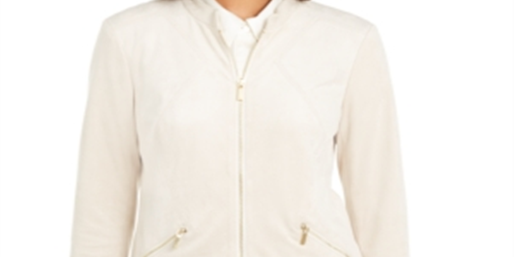 Smooth in more ways than one| Alfani's petite jacket in soft faux suede gives you a minimalist-chic option for cool days| Its front pockets zip for security and style
