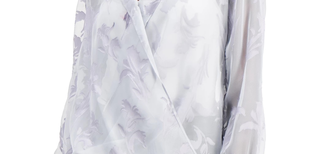 Alfani Women's Faux-Wrap Burnout-Detail Blouse Gray Size Large