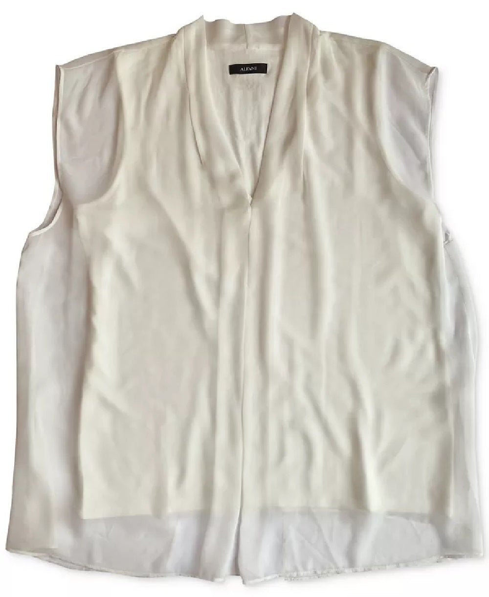 Approx. 28" long|V-neck|Pleated overlay; slit at center back; solid lining|Rayon/spandex; overlay: polyester|Machine washable|Imported