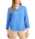 Alfani Women's Linen Tie Back Blouse Blue Size XXL