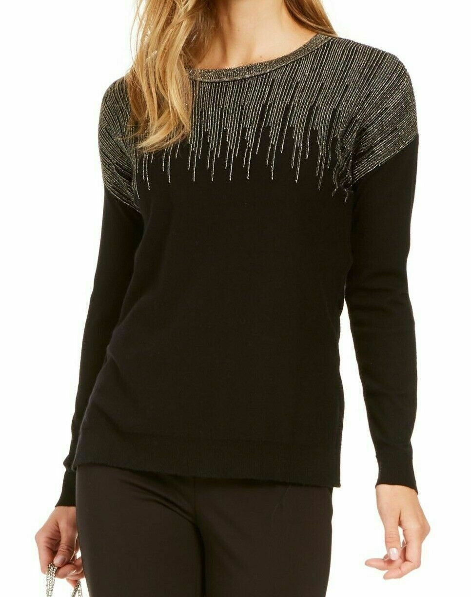 Alfani Women's Metallic-Detail Vented-Hem Sweater Black Size Small