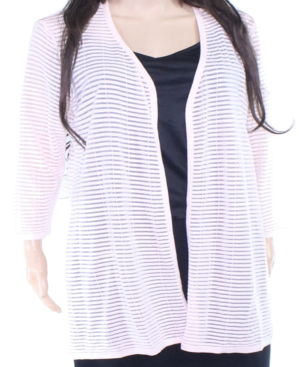 Alfani Women's Ottoman Striped Open-Front Cardigan Sweater Pink Size S