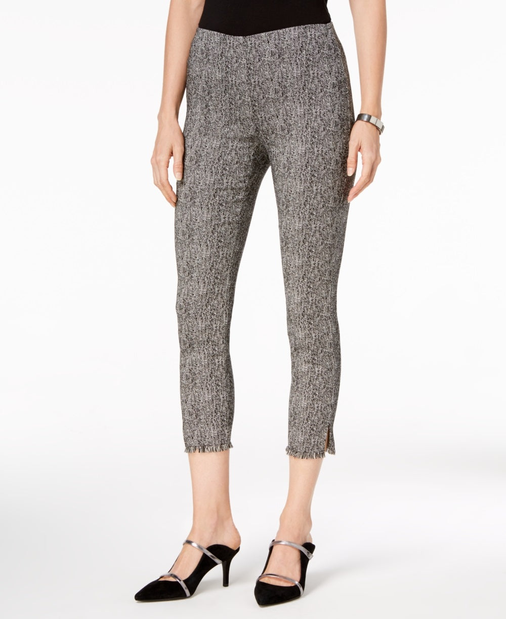 Alfani Women's Petite Fringe Hem Ankle Pants Grey Size 14 Petite