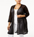 A simple plus size style gets a fashion-forward makeover from Alfani. The elongated silhouette and sheer striped fabric of this open-front cardigan let you layer like a pro.| Open front; no closures | Sheer stripe fabric| Rayon/nylon/polyester| 3/4 sleeves| Easy fit; hits at thigh|