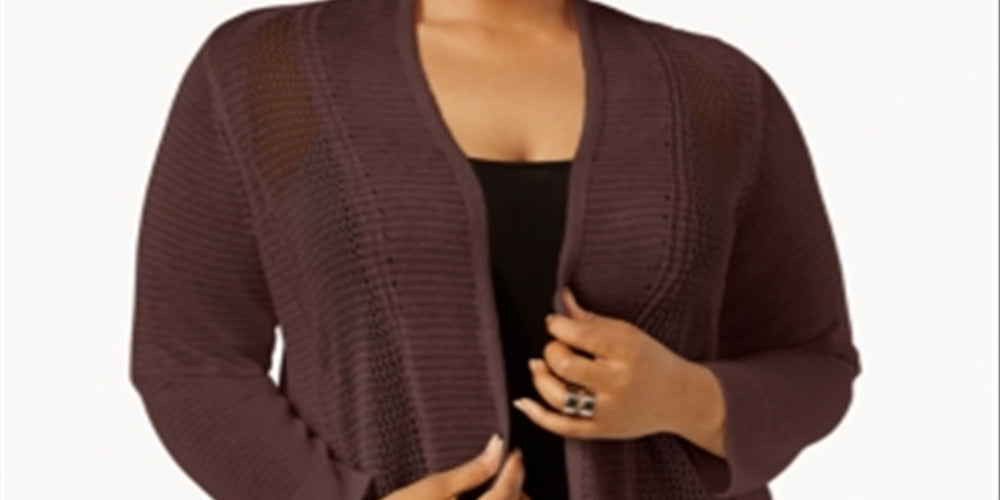 Alfani Women's Plus Mixed Stitch Open Front Cardigan Brown Size 4X